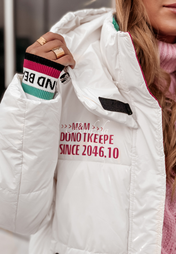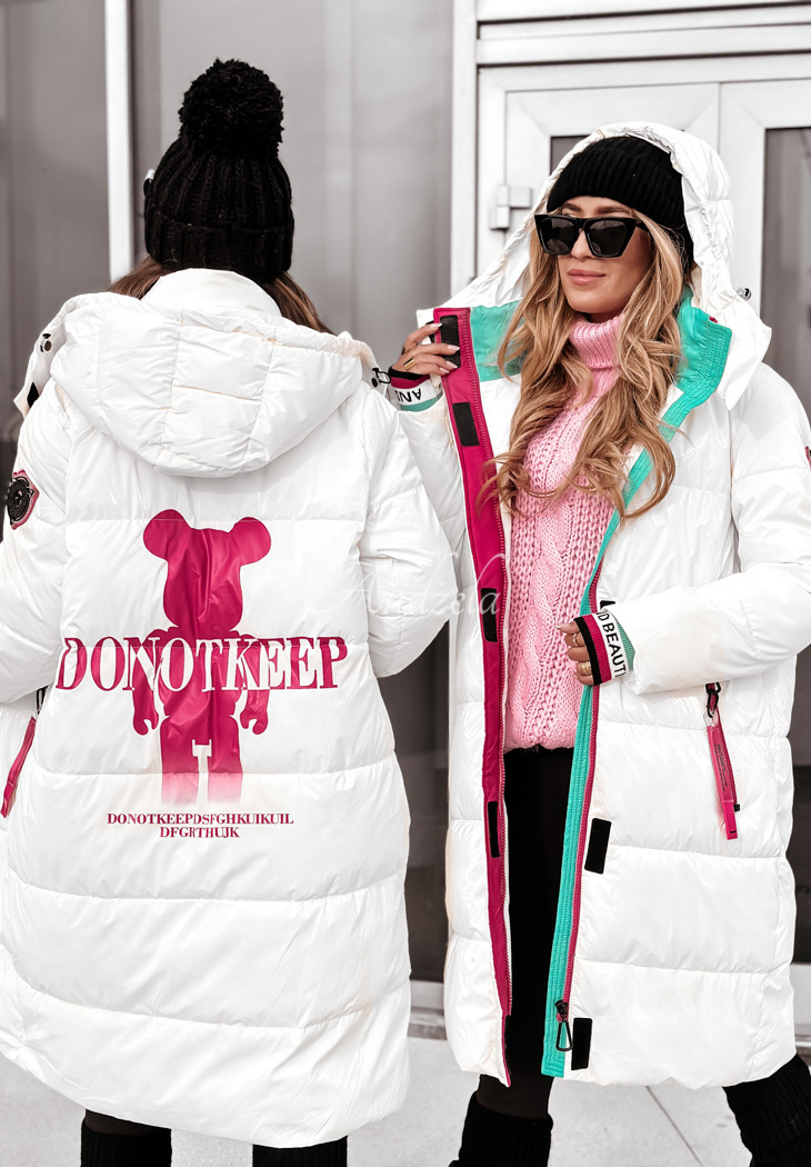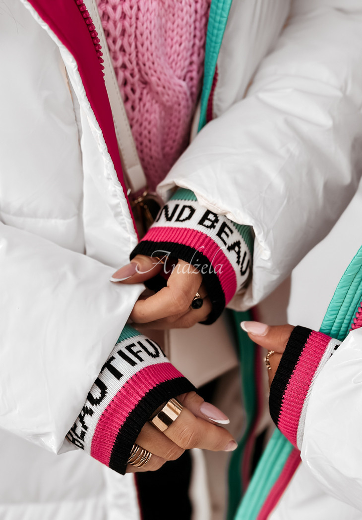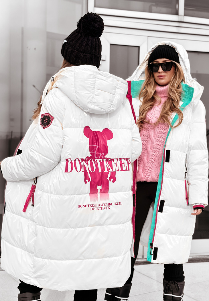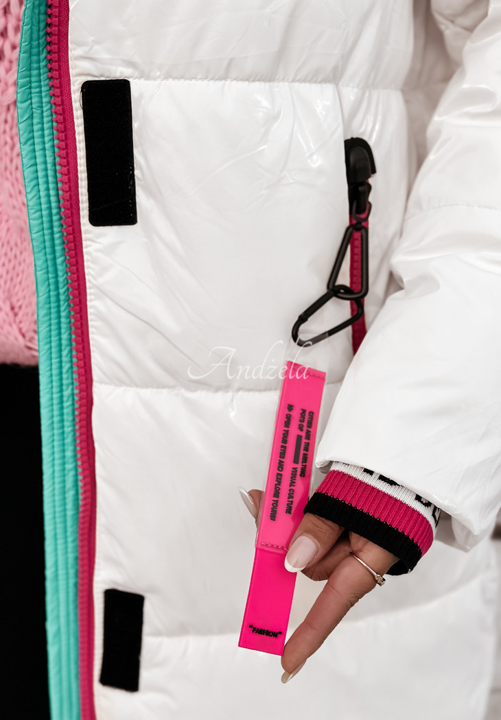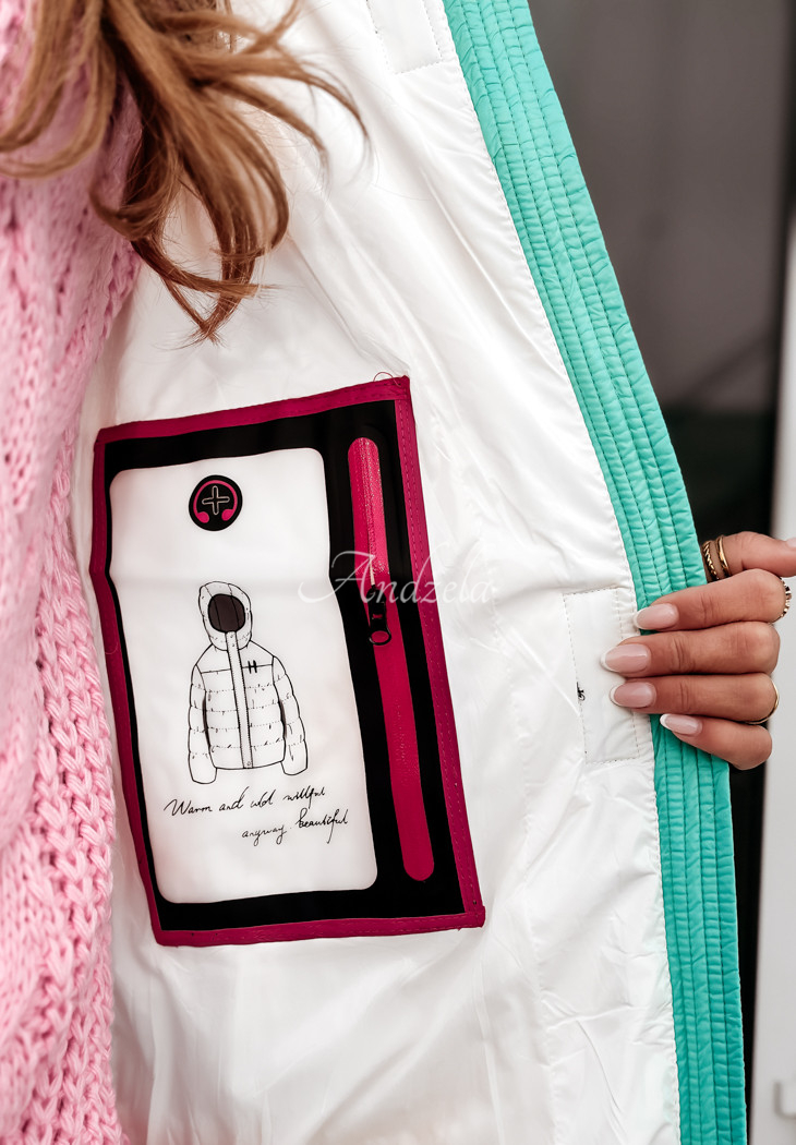 A quilted jacket with fashionable, colorful inserts is a perfect option for everyday looks. Thanks to its elongated cut and synthetic insulation, it will be perfect for the autumn-winter season. It is a model with a detachable hood and collar, and is fastened with a zipper and covered Velcro fasteners. The sleeves are finished with elastic cuffs, and there are functional pockets on the front. The whole is complemented by prints that give it a unique character.