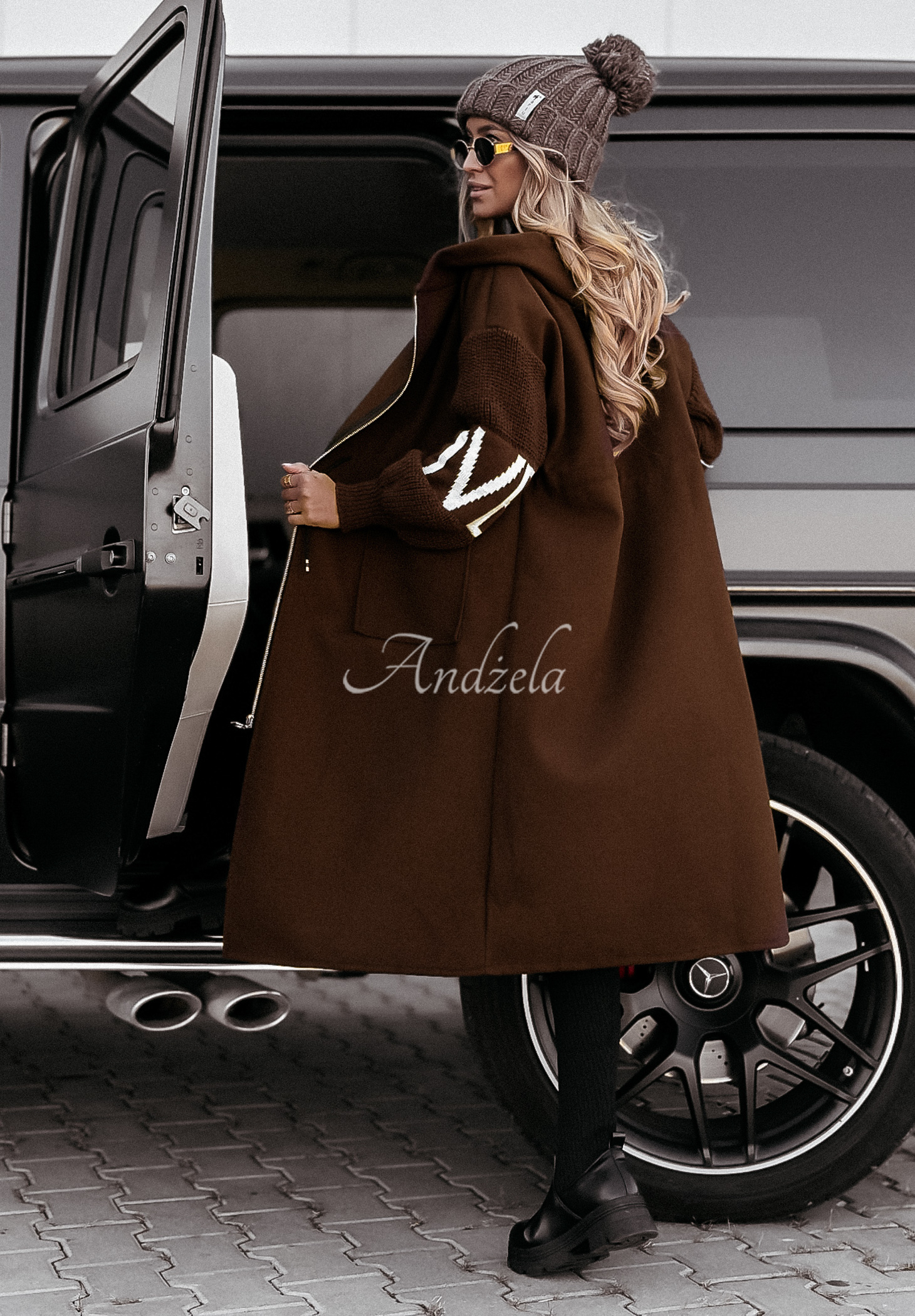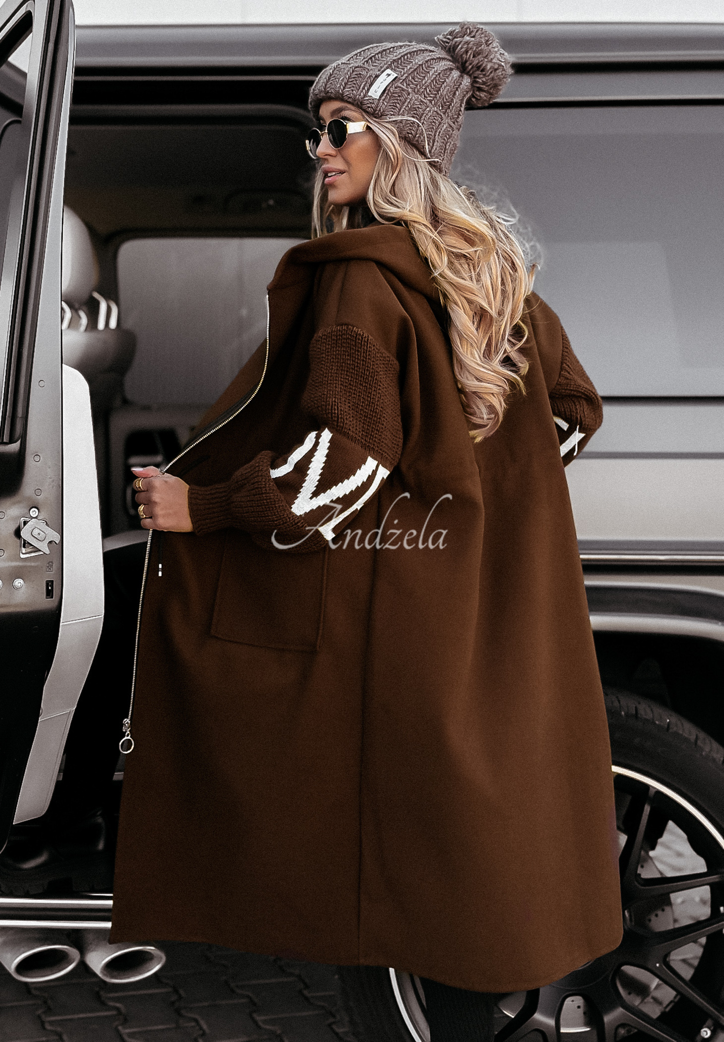 Long coat with sweater sleeves is a perfect choice for the transitional period and colder days! The model with a hood, is fastened with a silver zipper. There are functional pockets on the front and a small slit at the bottom. Adjustable drawstring waist makes the whole thing perfectly fit your figure and emphasize your assets.
