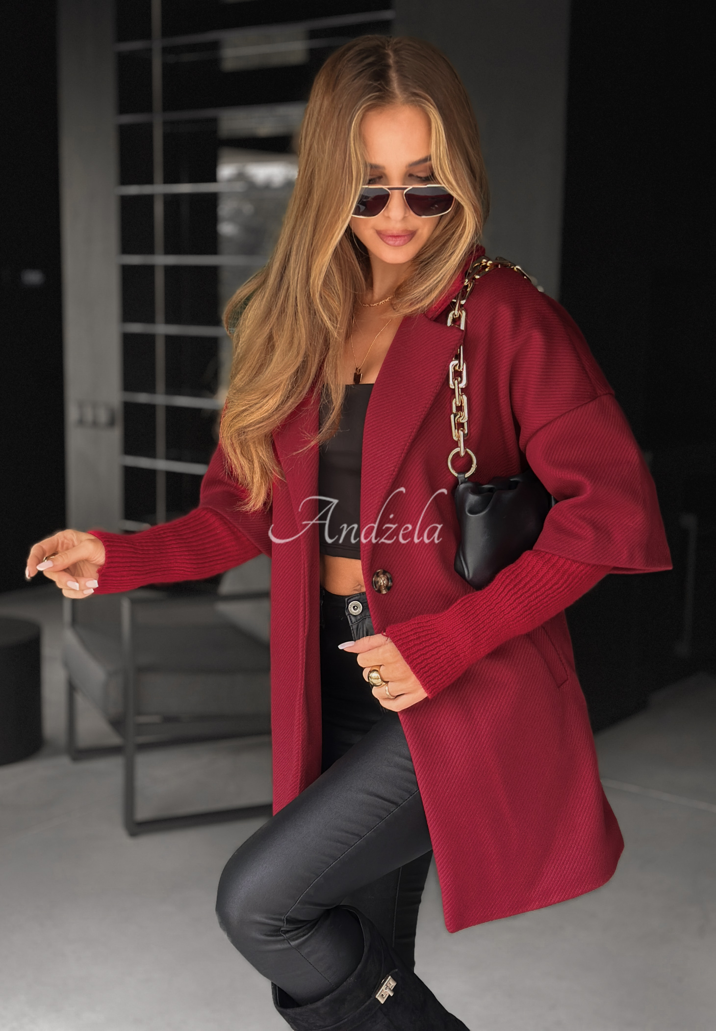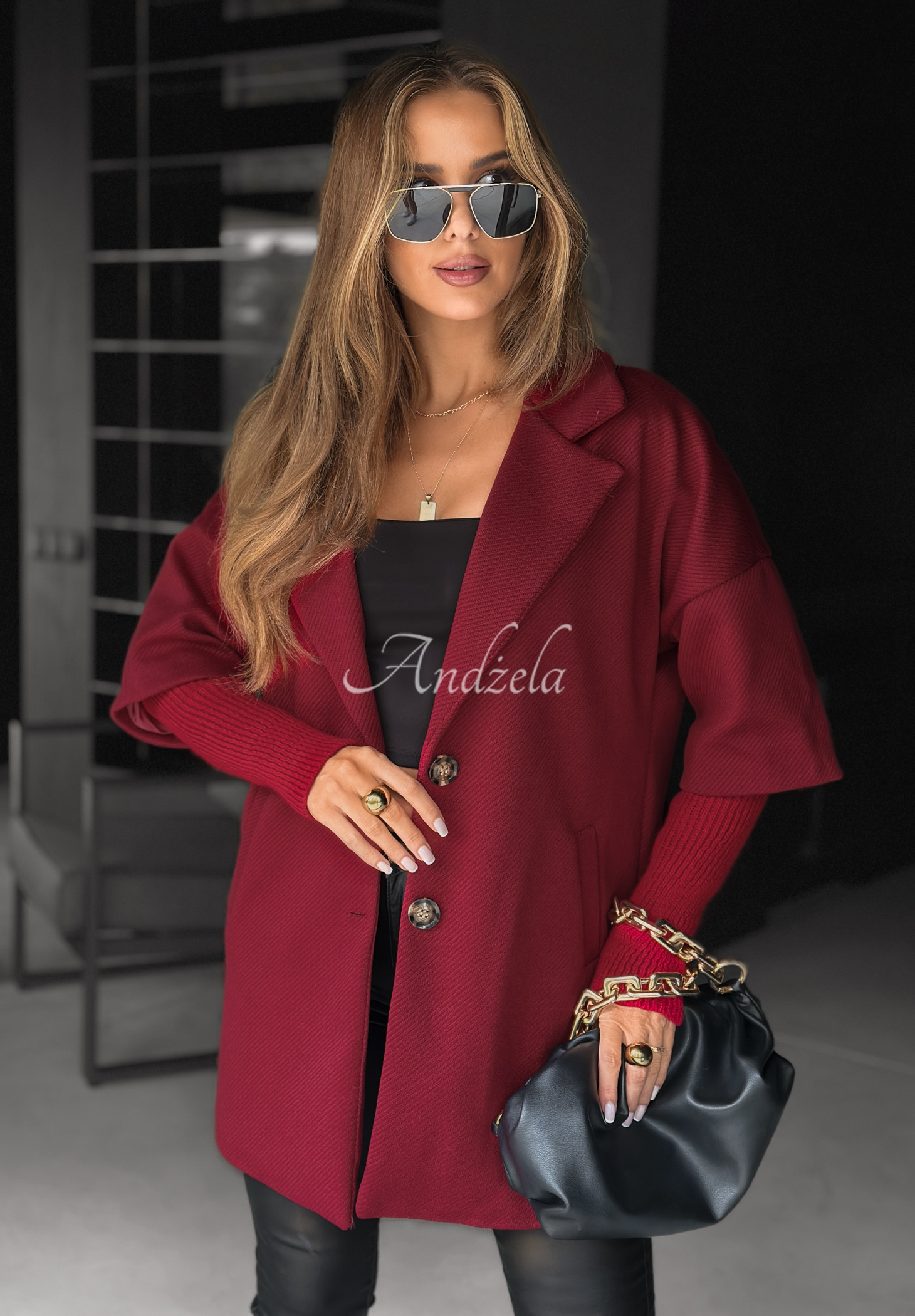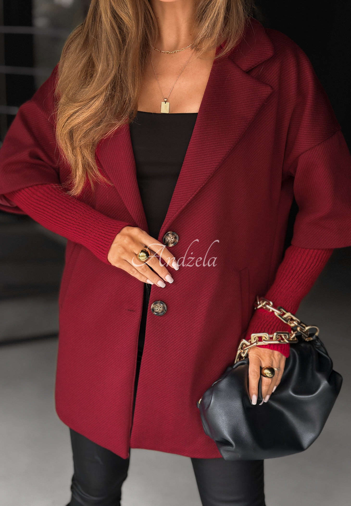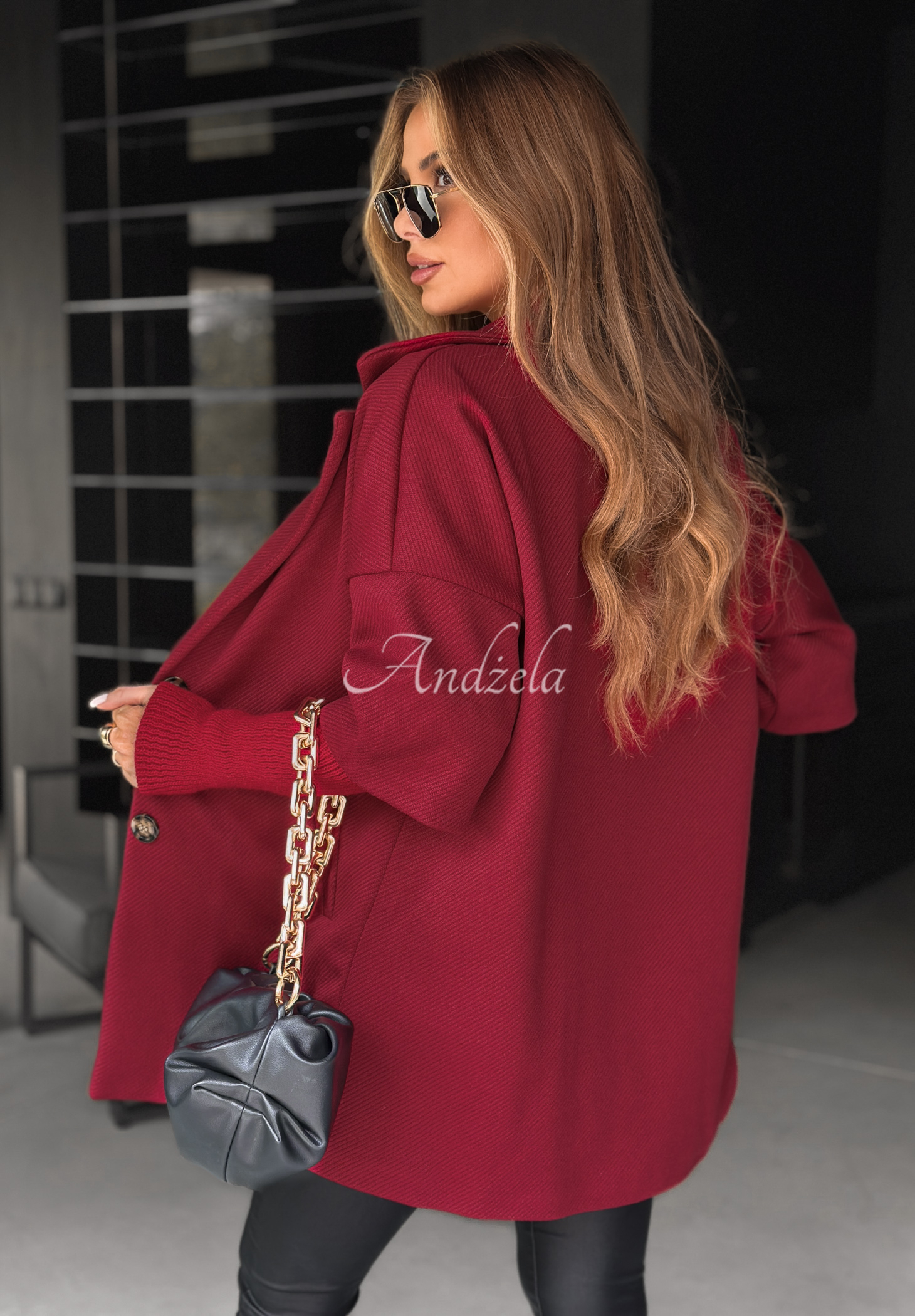 Płaszcz oversize Leaves Of Autumn burgundowy