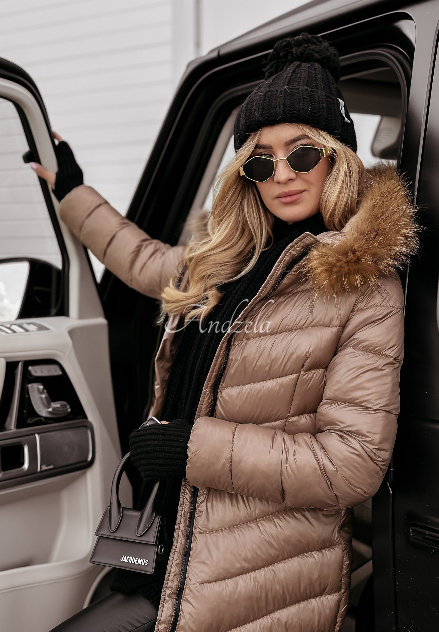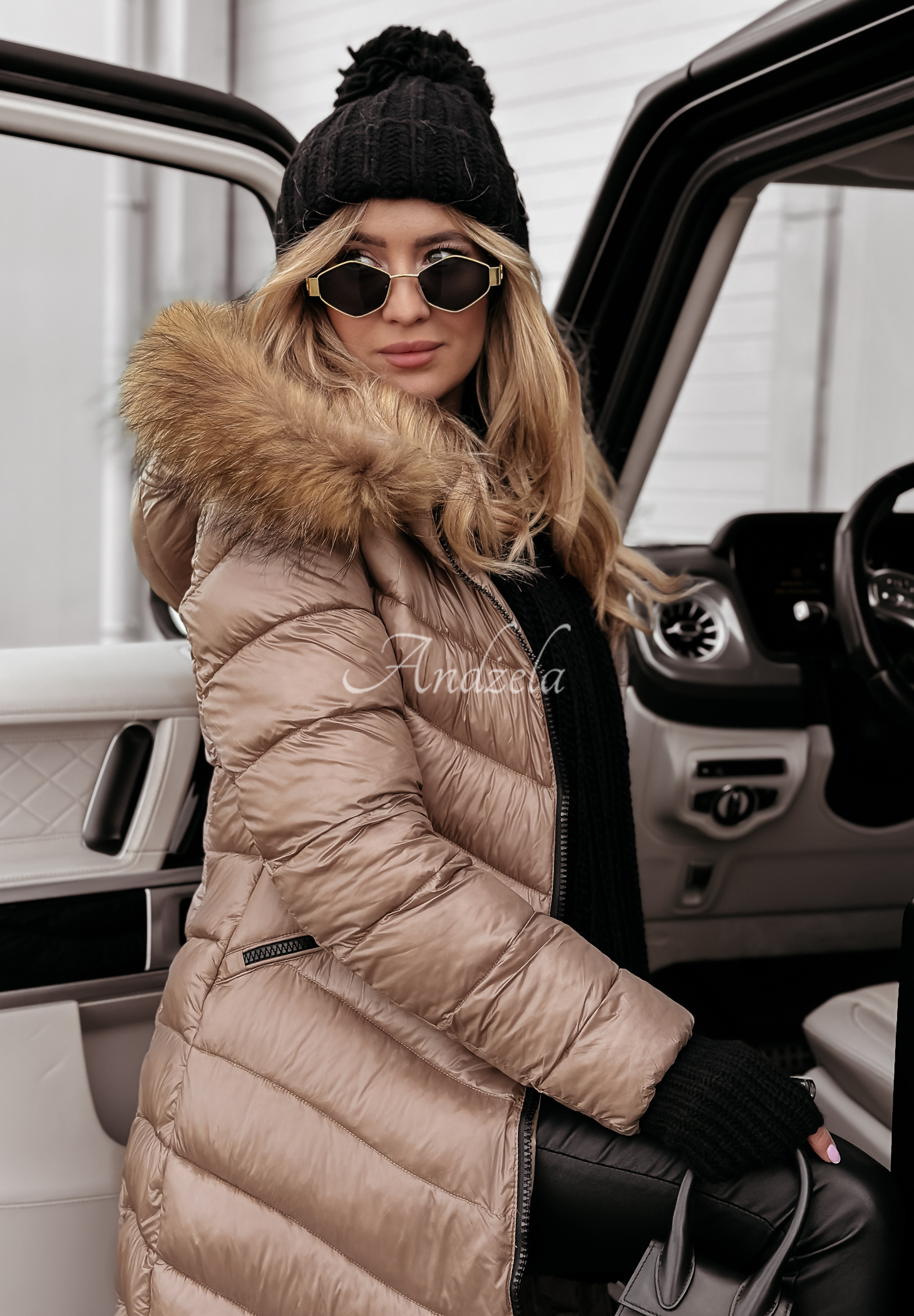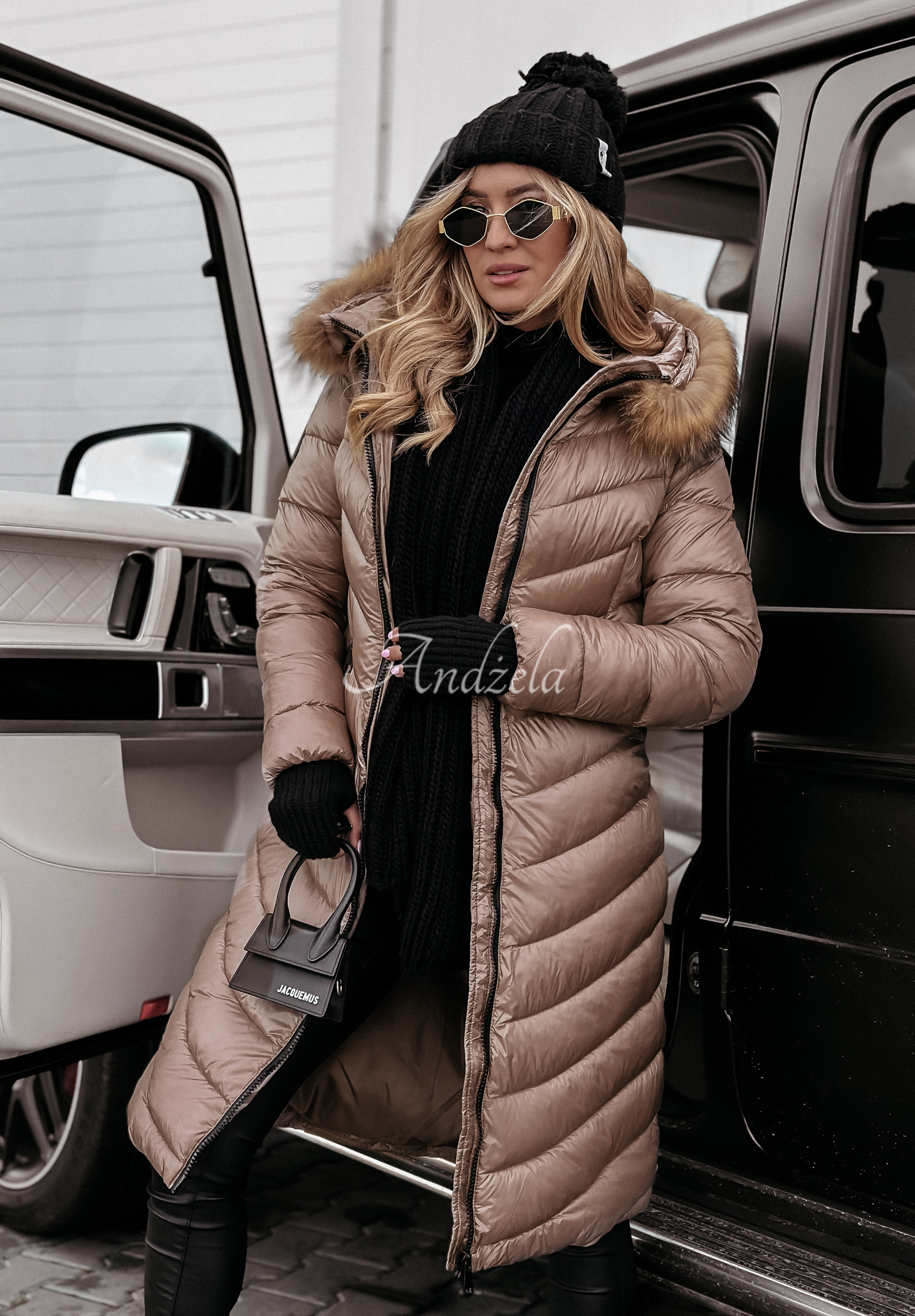 The long jacket, insulated with synthetic down, is zippered and will be a great choice for cold winter days. The model with a large hood is distinguished by a detachable natural fur, which will give the whole thing a great look. The jacket is also distinguished by zippered, asymmetrical pockets at waist level. The long sleeves, are finished with an elastic hem, which will keep the cold air from getting inside.