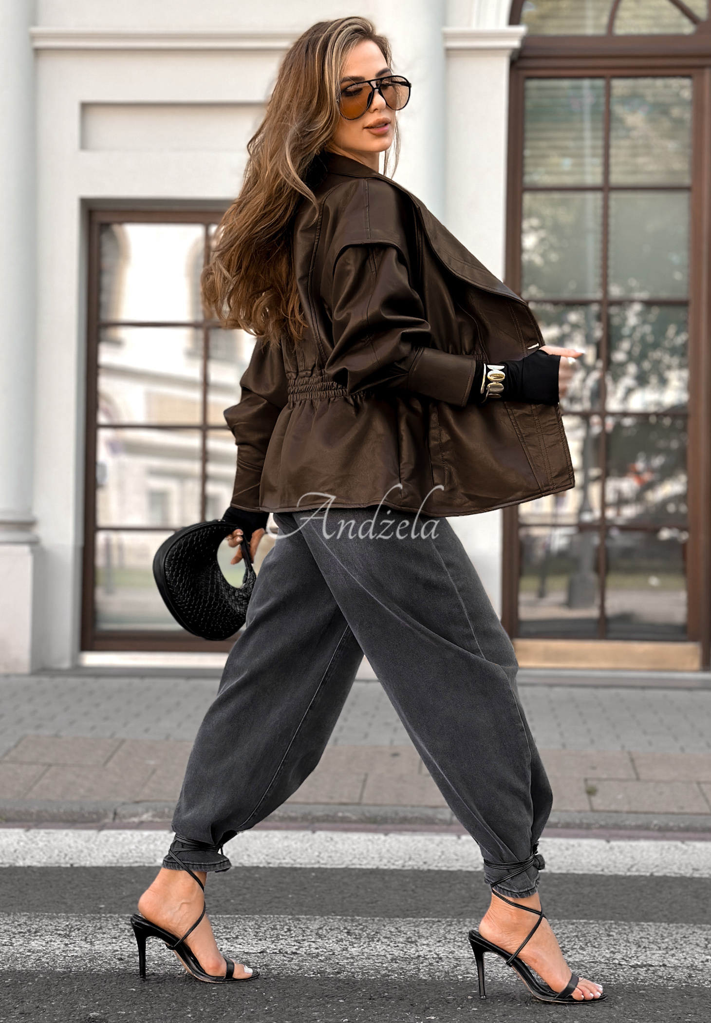 Live Fully chocolate leather jacket with collar