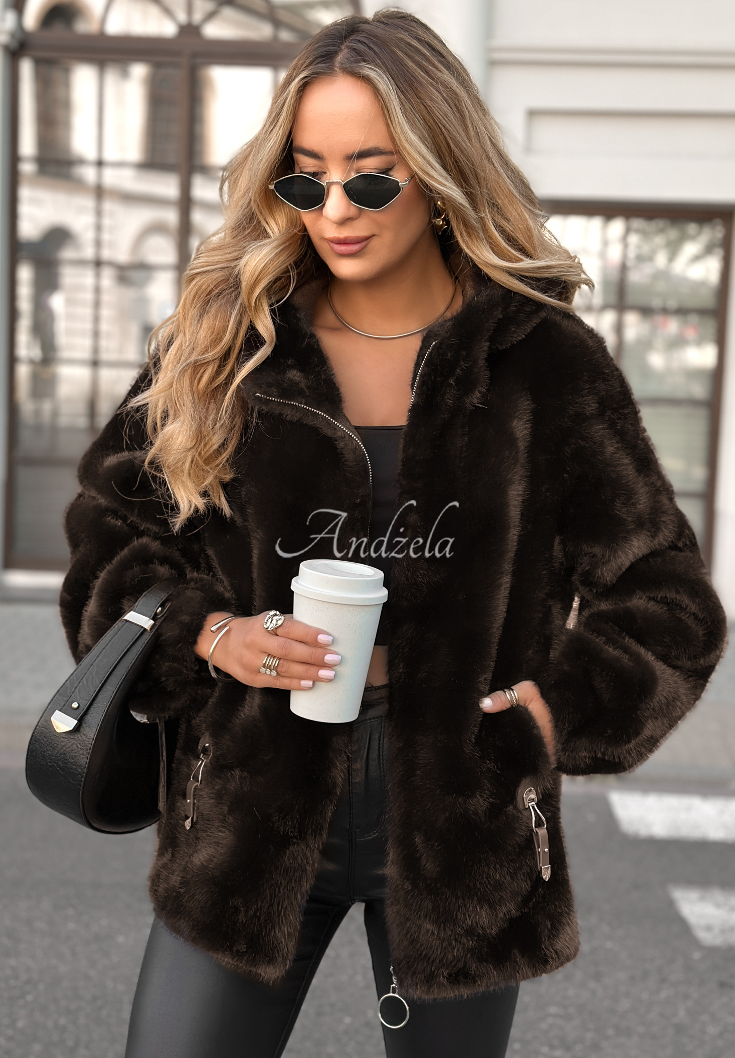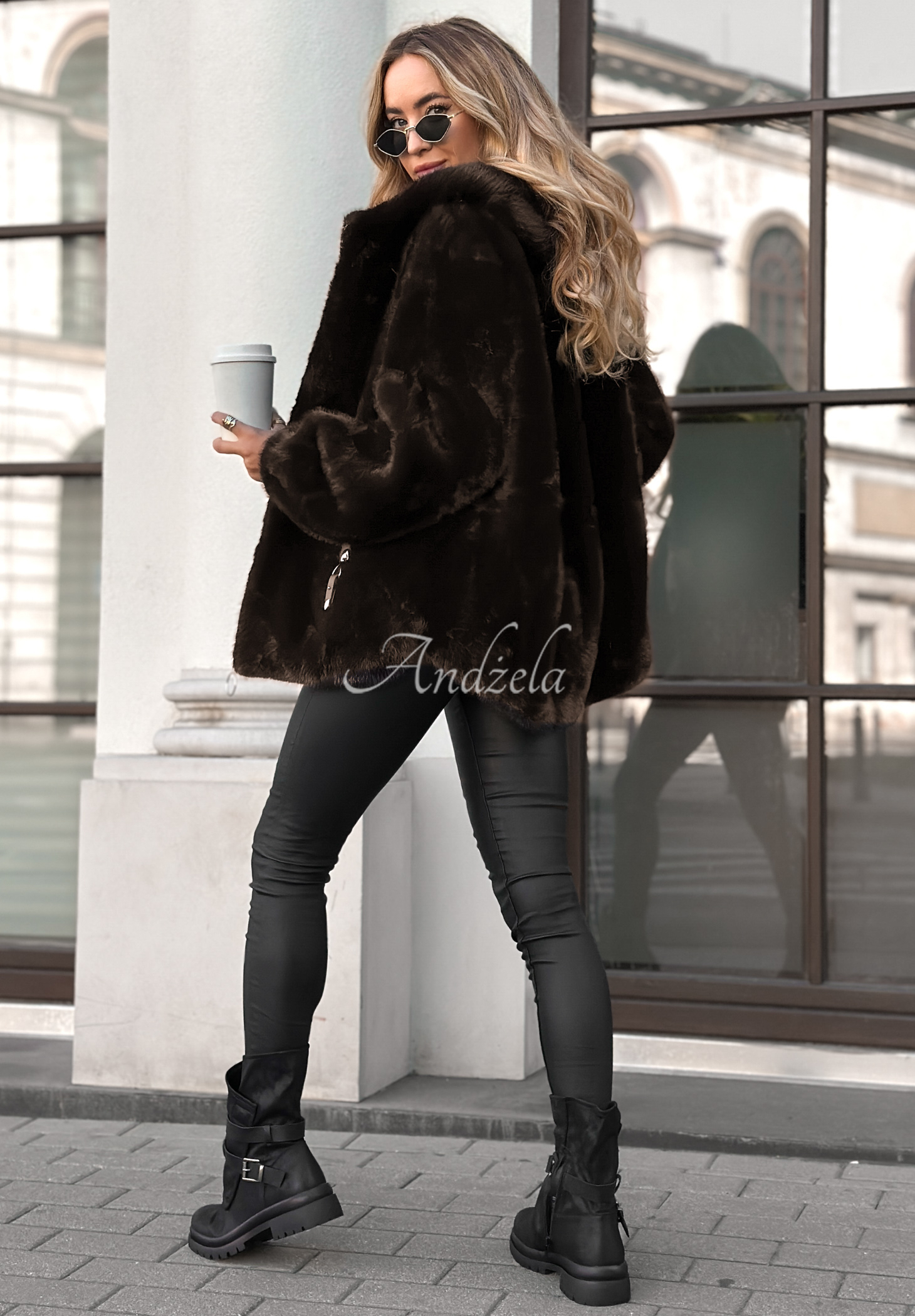 White Raven short fur jacket chocolate.