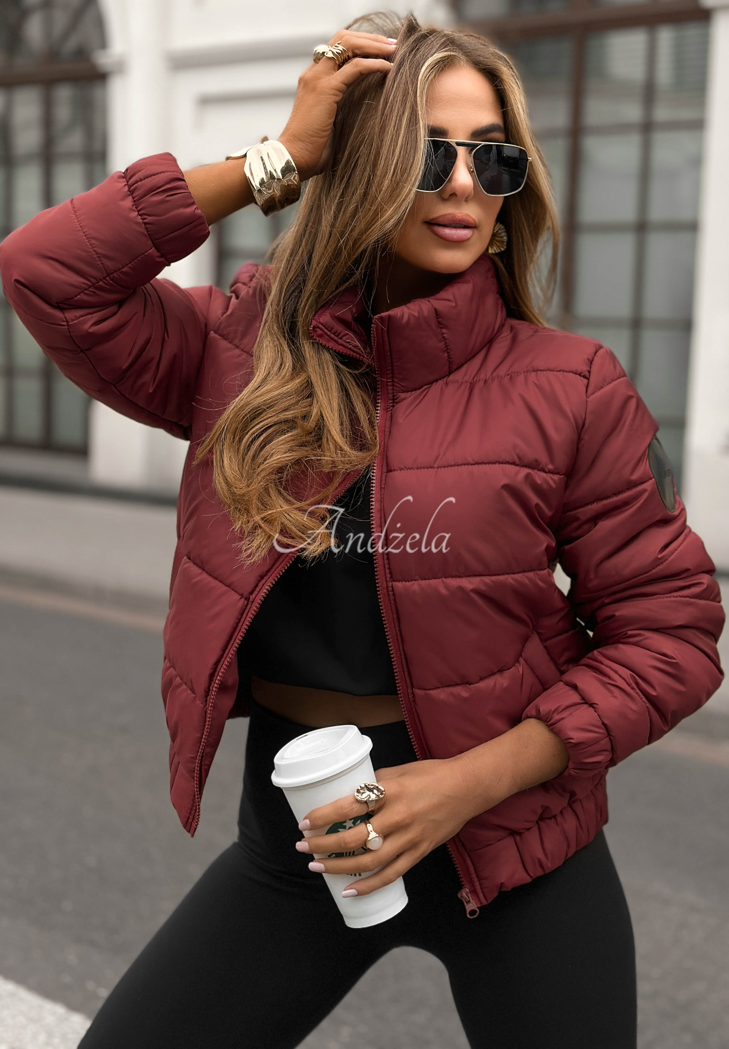 A quilted jacket with a shorter cut, having a synthetic filling. It is a proposal with a stand-up collar and a zipper closure. There is an elastic band at the lower part. It has functional pockets, and j its long sleeves are finished with ribbed cuffs.