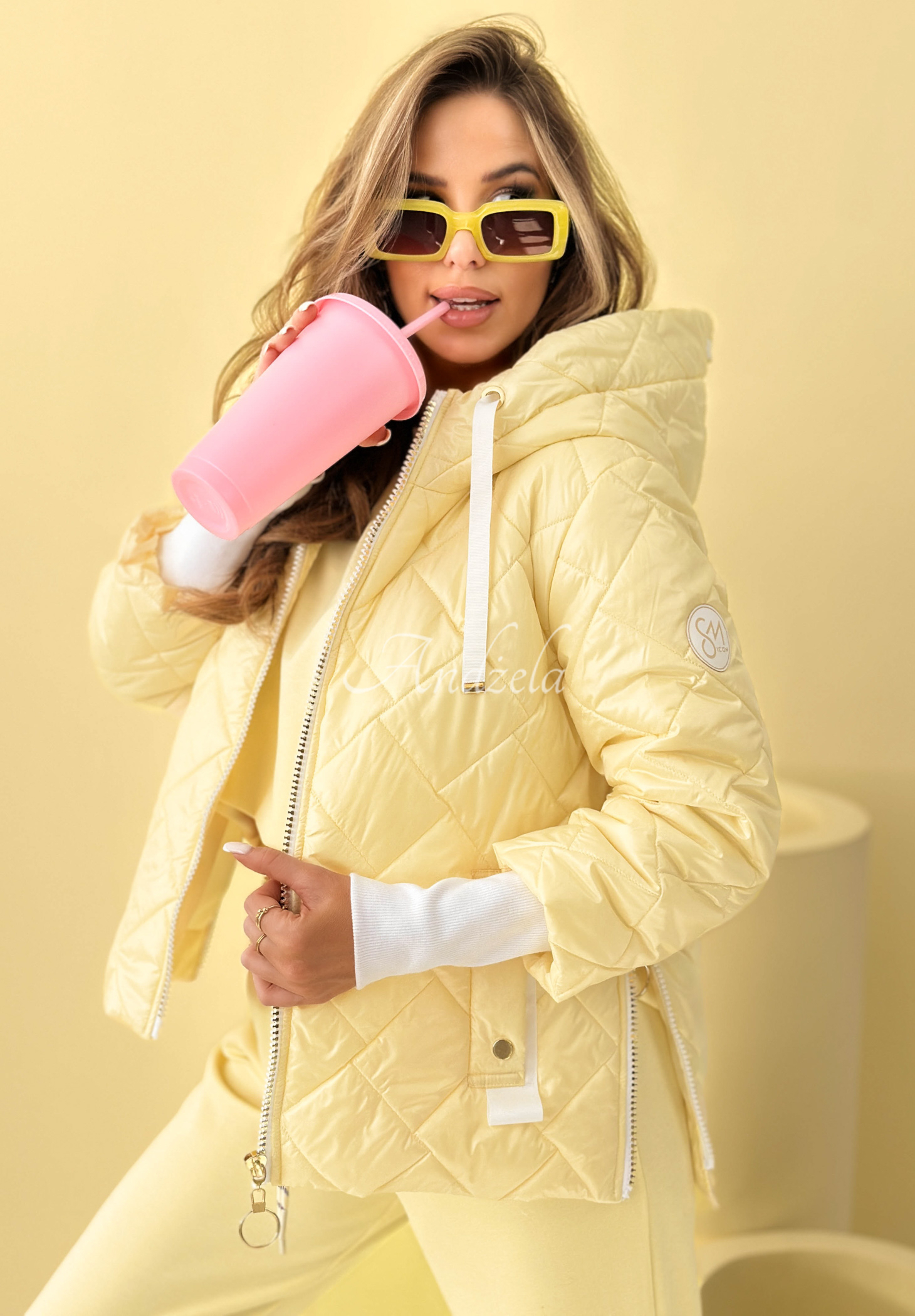 Hello Spring yellow quilted jacket with hood