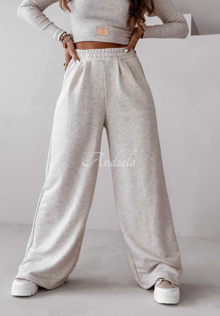 A unique set made of high-quality fabric is a perfect base for many everyday looks. A short, ribbed blouse with a rounded neckline and a patch at the bottom. Pants with elastic waistband and side pockets stand out with wide legs. Available in several color versions.