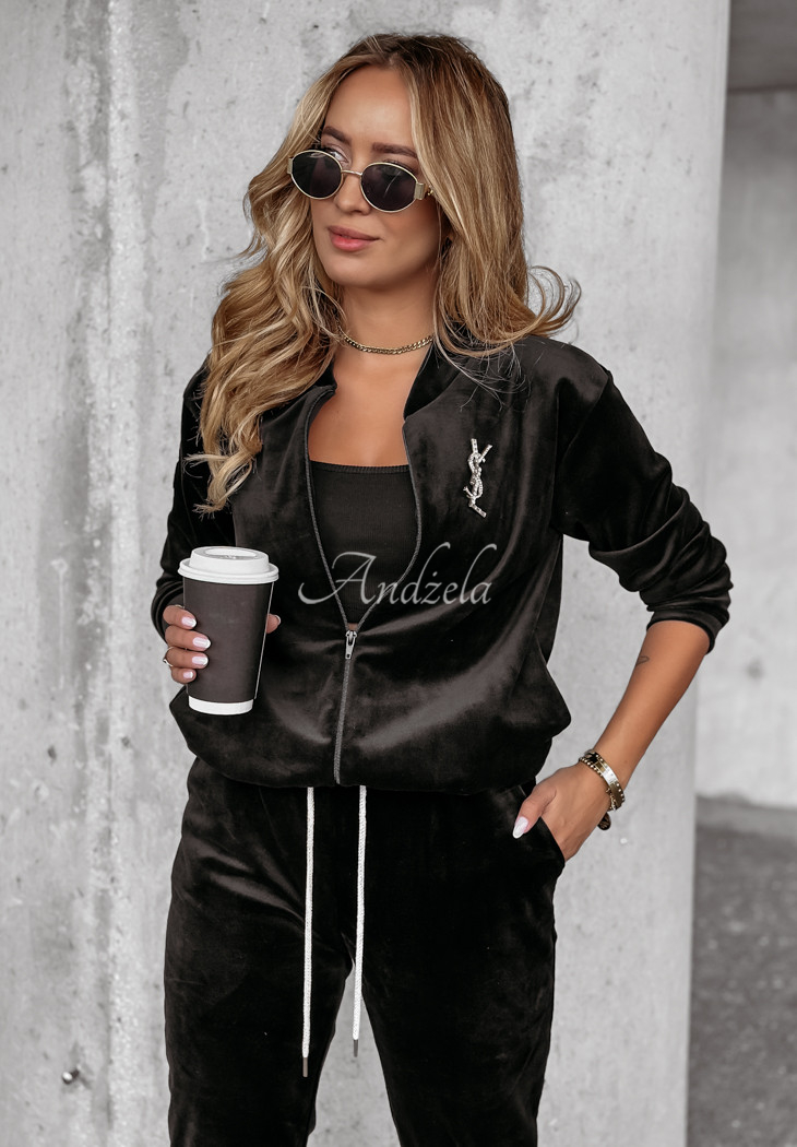 A velour set made of high-quality cotton material is a perfect proposition for women who opt for comfortable, yet fashionable solutions. The blouse with a classic cut is fastened with a zipper. The pants are a model with drawstrings at the legs and functional pockets on the front. They have an elastic adjustable waistband, thanks to which they perfectly fit the figure. The whole set will present itself really great in everyday loos.