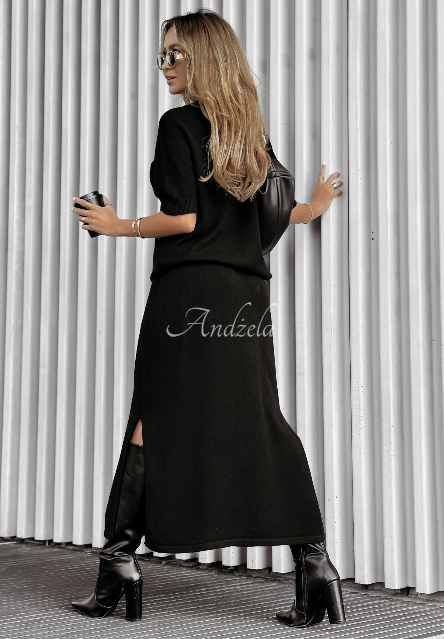 This knitted set is a proposal perfect for quick styling in a comfortable, yet feminine way. The whole set is made of elastic, pleasant to the touch material. The set includes a blouse of classic cut with short sleeves and a rounded neckline. The attached maxi skirt is a model with spectacular slits on the sides, as well as an elastic waistband, thanks to which it fits perfectly to the figure. This set will work great in any closet!