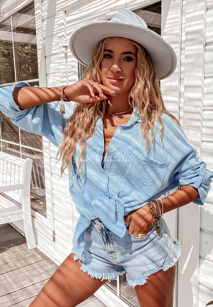 A muslin shirt with an elongated, slightly asymmetrical cut, is a great base for many everyday outfits. The model is buttoned and has adjustable sleeves. On the front, on the left side there is a pocket. The product is made of high-quality material and is available in several color variants.