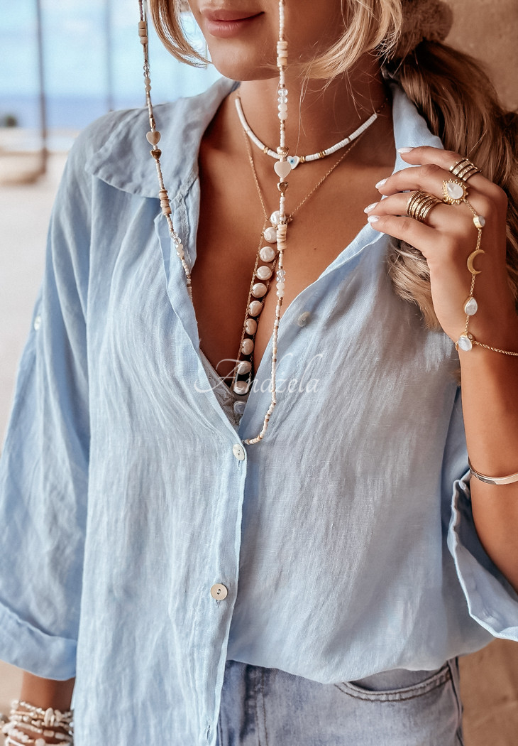 A linen shirt should definitely be in every summer closet! It is buttoned, has a collar, as well as adjustable sleeve length. The oversized cut will perfectly fit into looser styles, making them look light and fashionable.