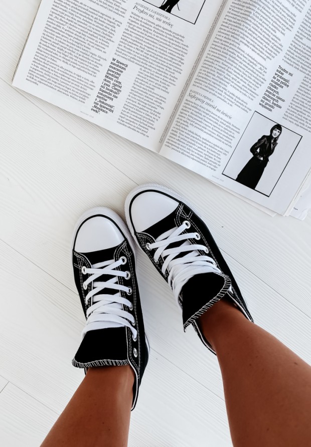 Lace-up ankle sneakers, set on a rubber sole, are a great choice for women who rely on simple solutions. This model is a staple of spring and autumn styling, which guarantees you a great look and comfort while wearing. The shoes will look great when matched with tracksuits or jeans.