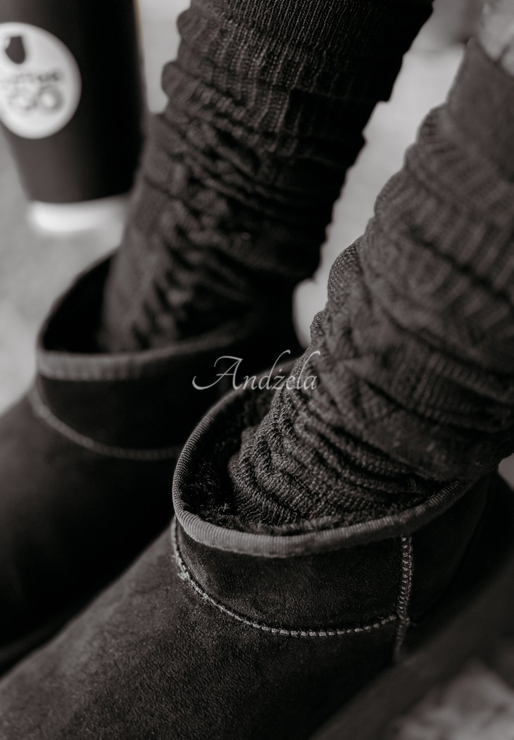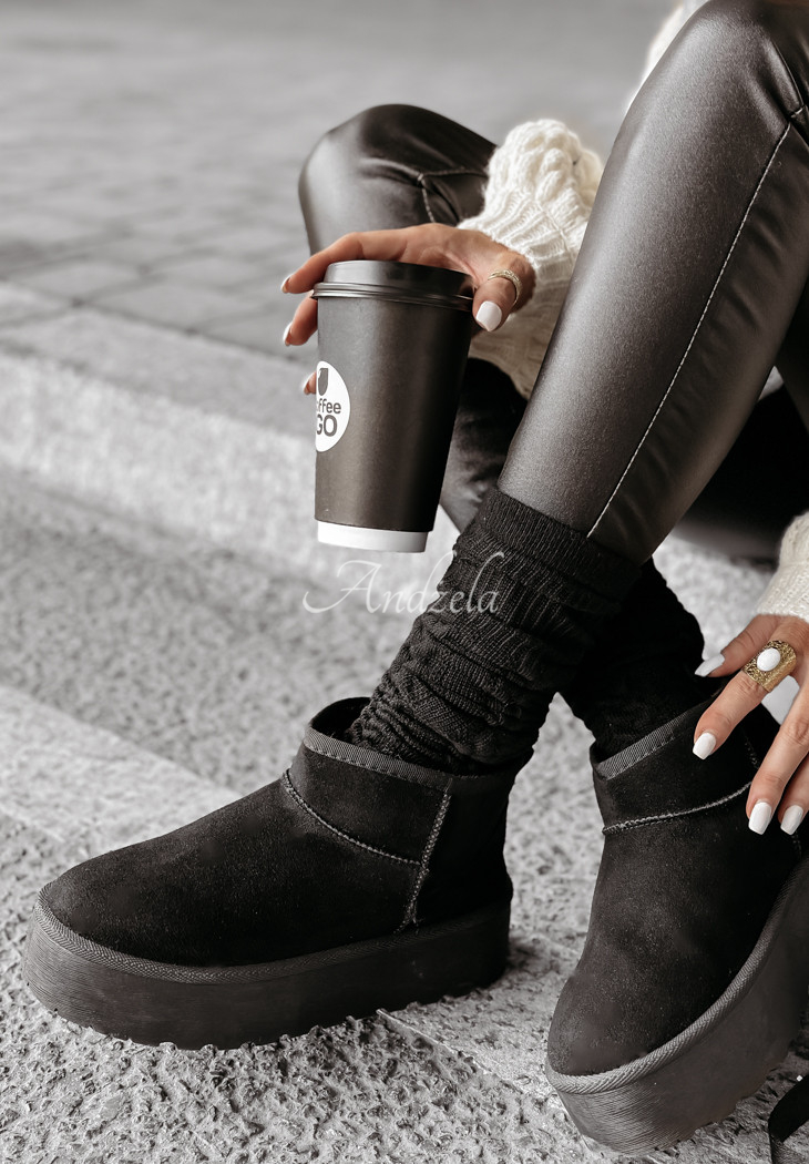 Extremely comfortable boots made of imitation suede should definitely be in every closet! They have a rounded nose, inside they are insulated with soft teddy bear. This is an unbuttoned model set on a raised, solid sole.