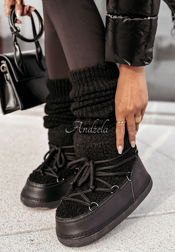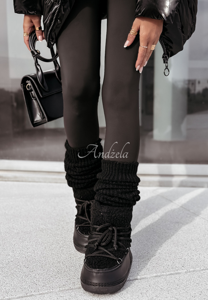Warmed snow boots made of imitation leather with sheepskin are a great choice for colder days. The model with lacing is set on a higher sole with a rounded nose. Shoes are available in several color versions.