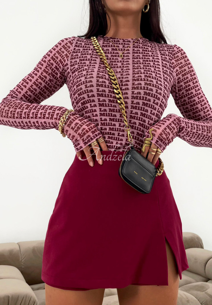 La Milla Got My Attention burgundy mini skirt-shorts with slit