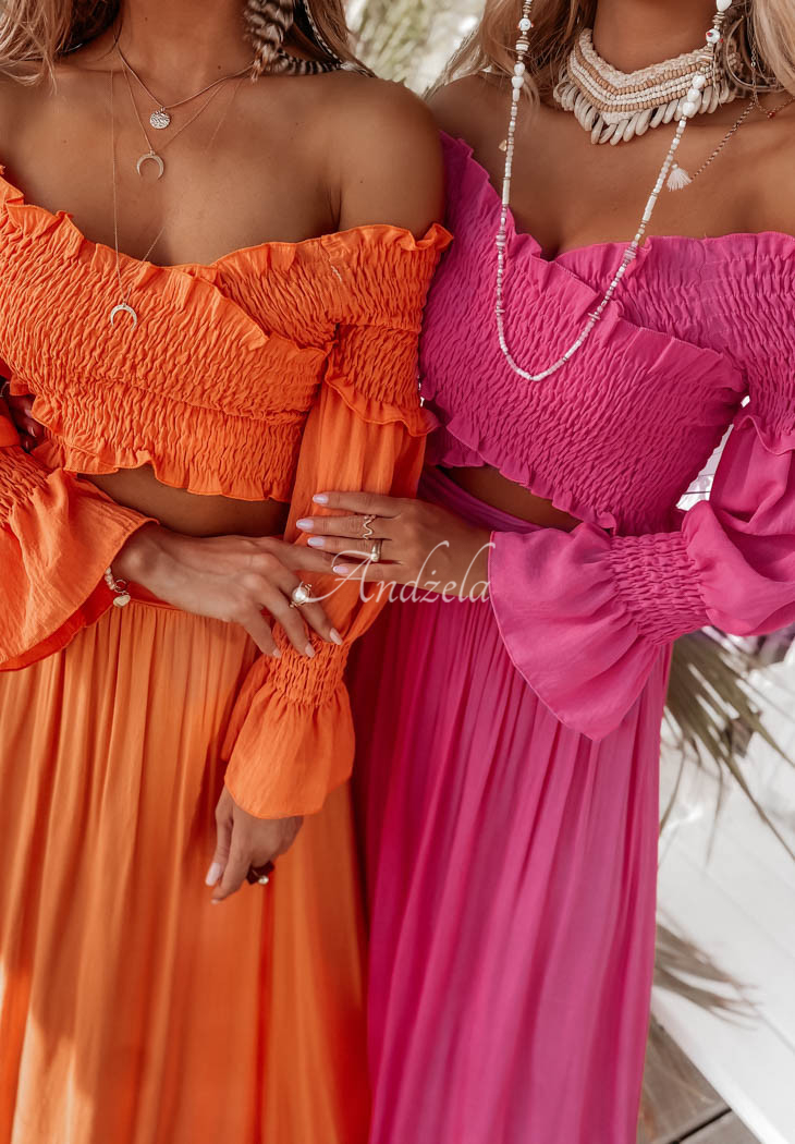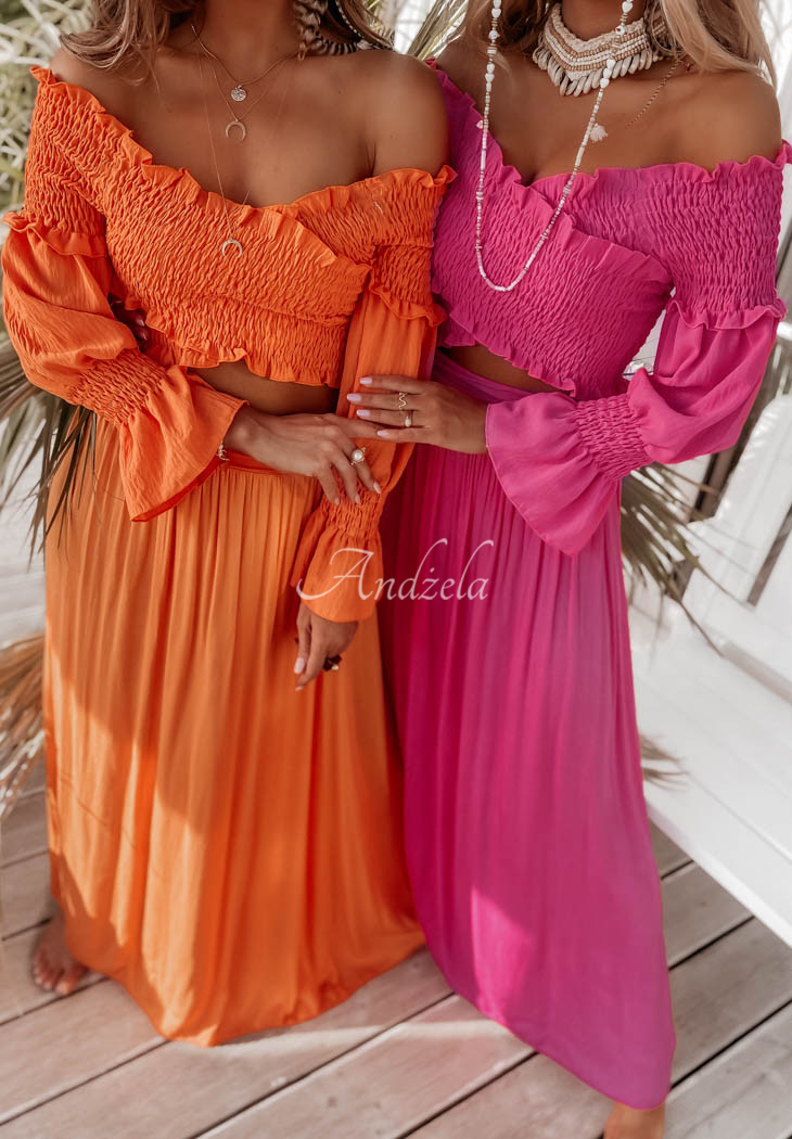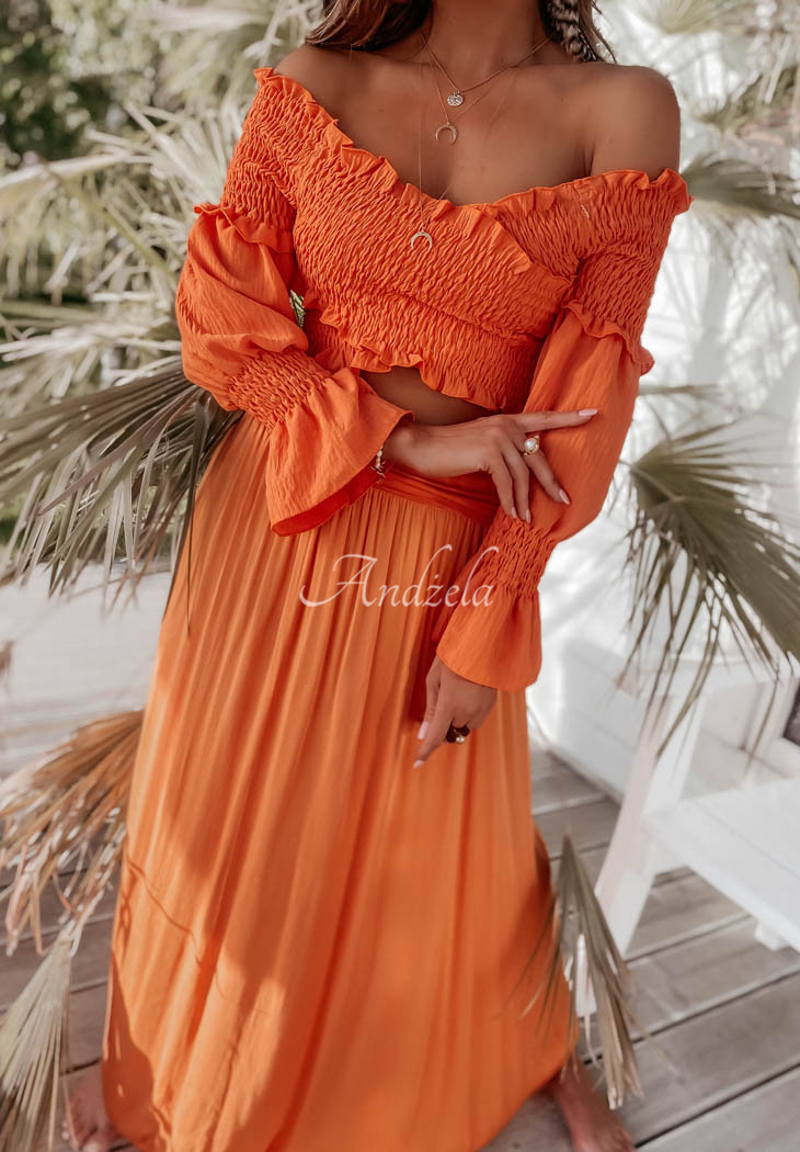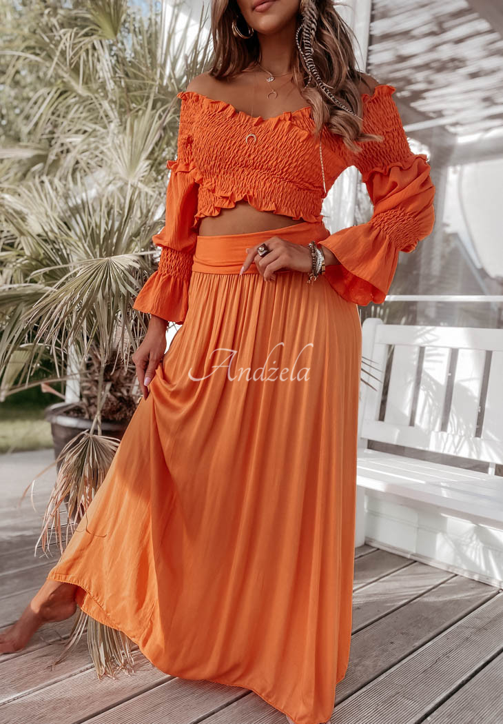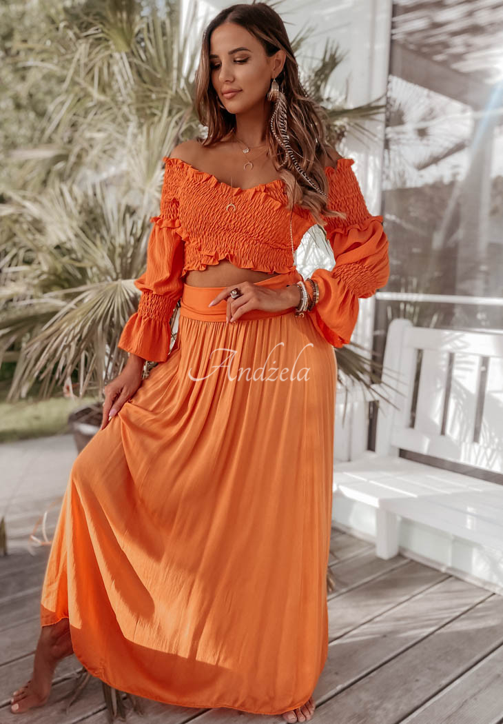 The long skirt is an excellent choice for composing many interesting outfits on hot summer days. You can also wear this model as a dress, thanks to the wide belt at the top. Available in many color versions.