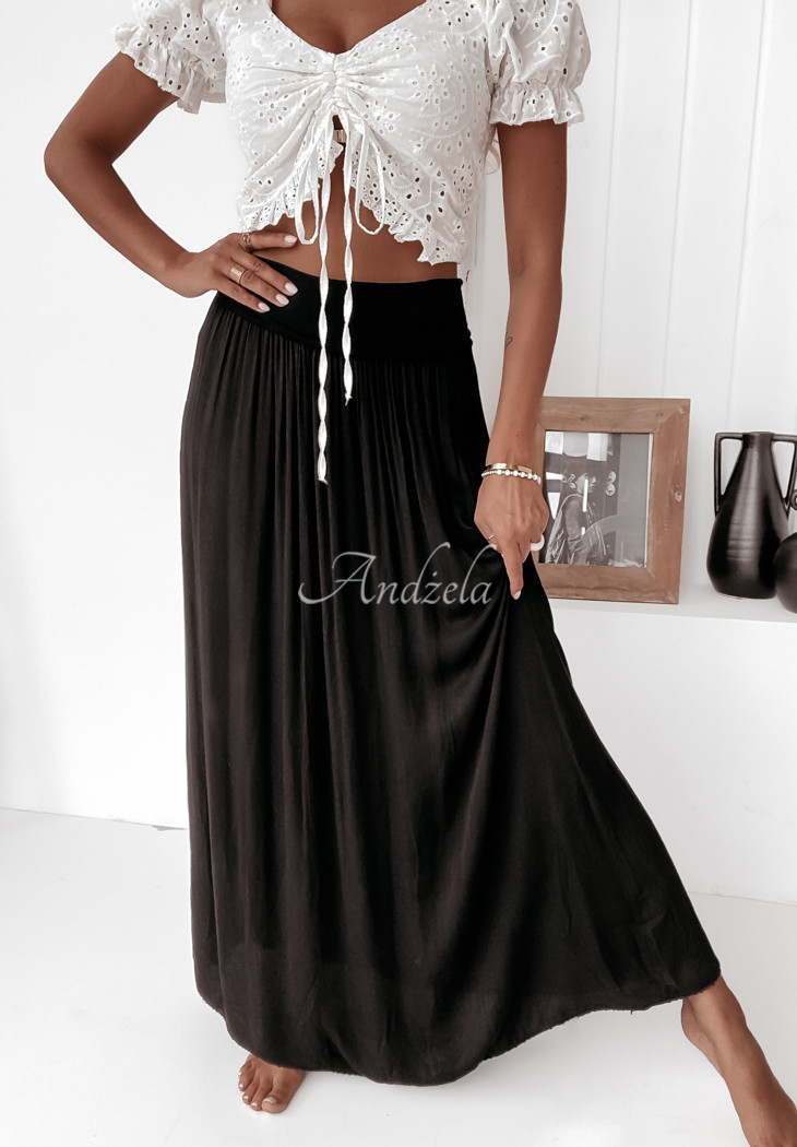 The long skirt is an excellent choice for composing many interesting outfits on hot summer days. You can also wear this model as a dress, thanks to the wide belt at the top. Available in many color versions.