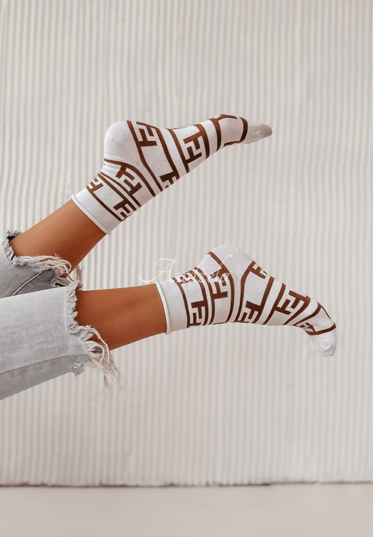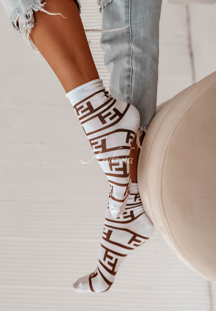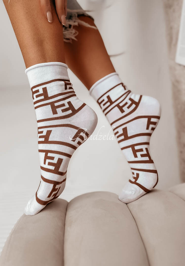 Socks with an interesting pattern are the perfect complement to your daily looks! The model does not have a welt in the upper part, and in addition, it is made of high quality cotton, so it will provide you with comfort and convenience while wearing.