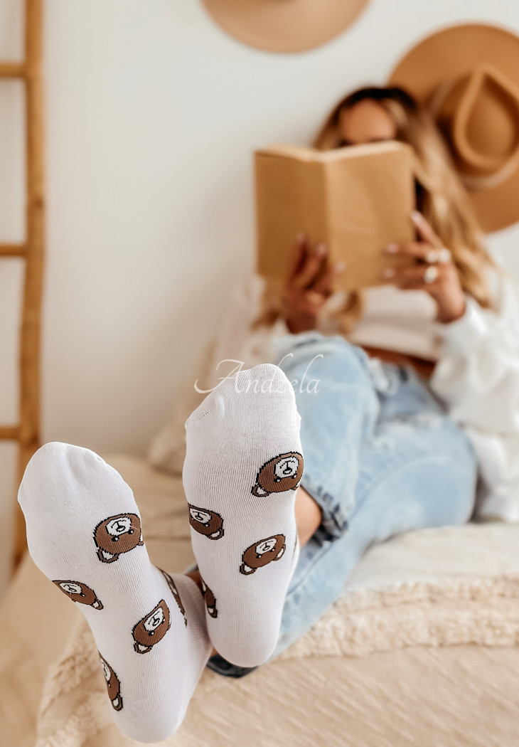 Basic patterned socks are a great addition to many outfits. The model was made of high-quality material. This product is an ideal choice for everyday wear, it will undoubtedly provide comfort and convenience.