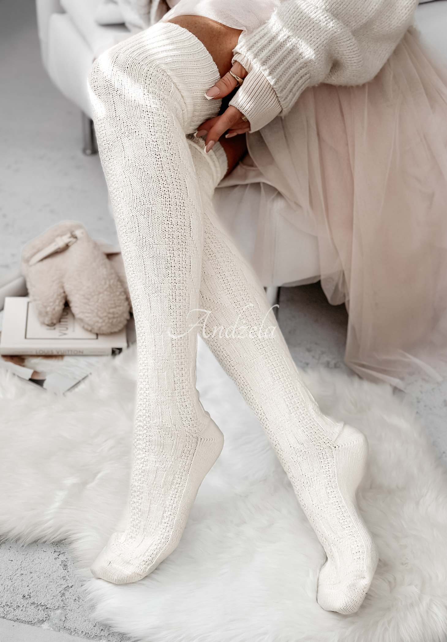 The knee-length socks are the perfect choice to complement autumn-winter styling. They are distinguished by a decorative weave, which will add charm to any look. This proposal is made of a pleasant, stretchy material with a blend of wool, which will provide warmth and comfort while wearing.