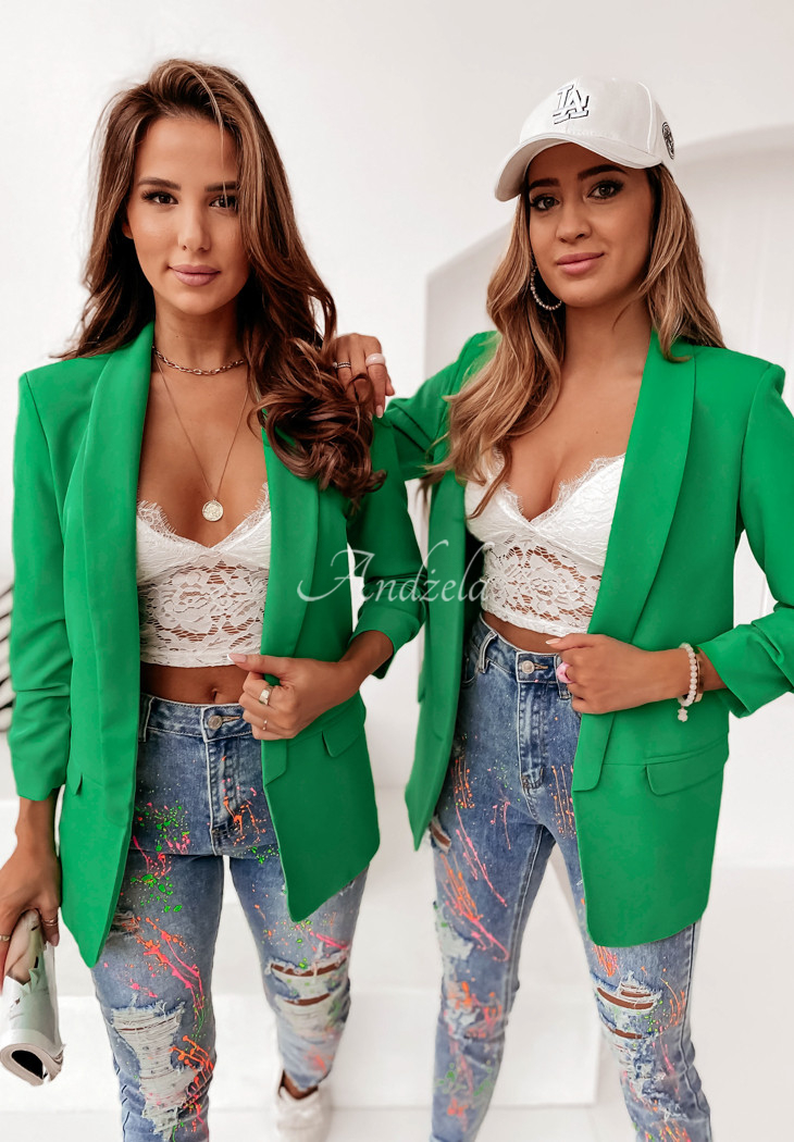 Elegant jacket that will look great in everyday and occasional outfits. The unbuttoned cut has imitation pockets and slightly ruffled sleeves. An additional advantage of this model are the pads, placed on the shoulders. Available in many color versions. Designed by ANDŻELA!
