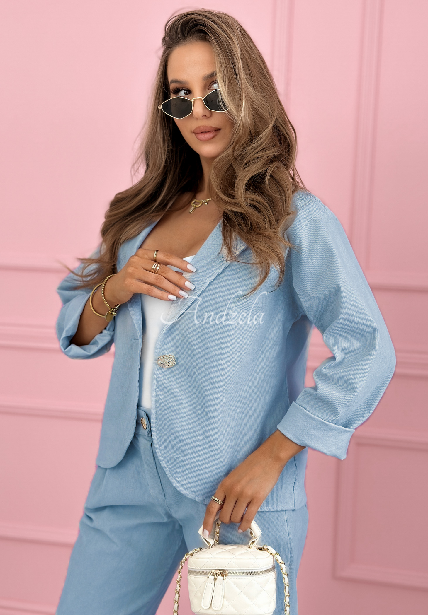 Corduroy jacket made of slightly elastic cotton fabric. Model with a collar, fastened with a gold button. It will look great in combination with trousers from the "Goodbye Lovely" line.