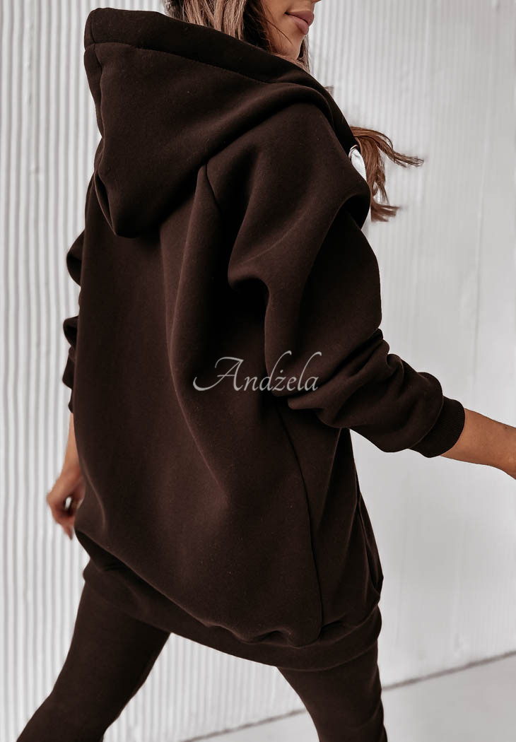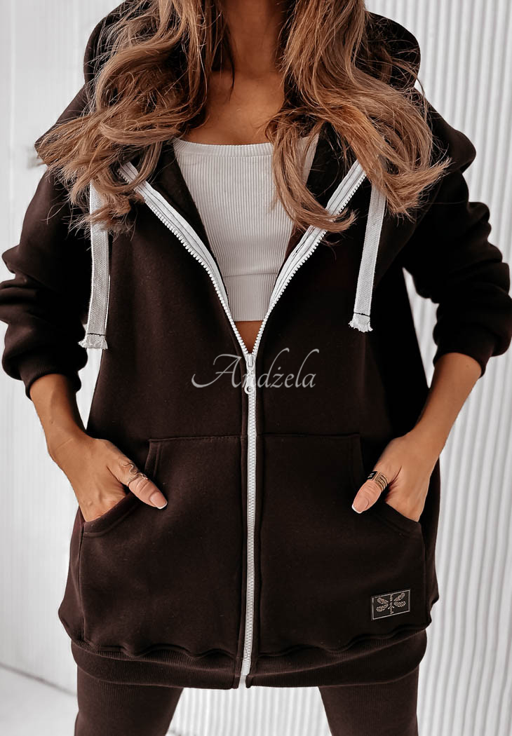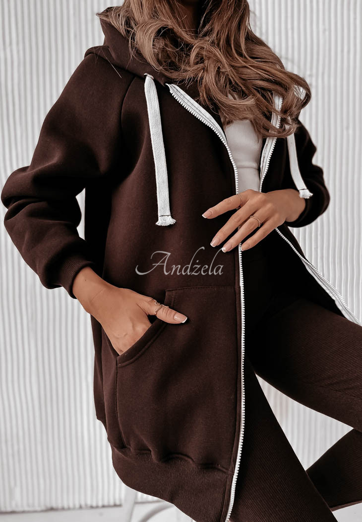 This oversized cut sweatshirt should be in every closet! It is zippered and has pockets on the front, with a small patch on one of them. The sleeves and hem are finished with welts. The whole is an ideal choice for those looking for comfortable, yet fashionable solutions. The product is available in two color variants.