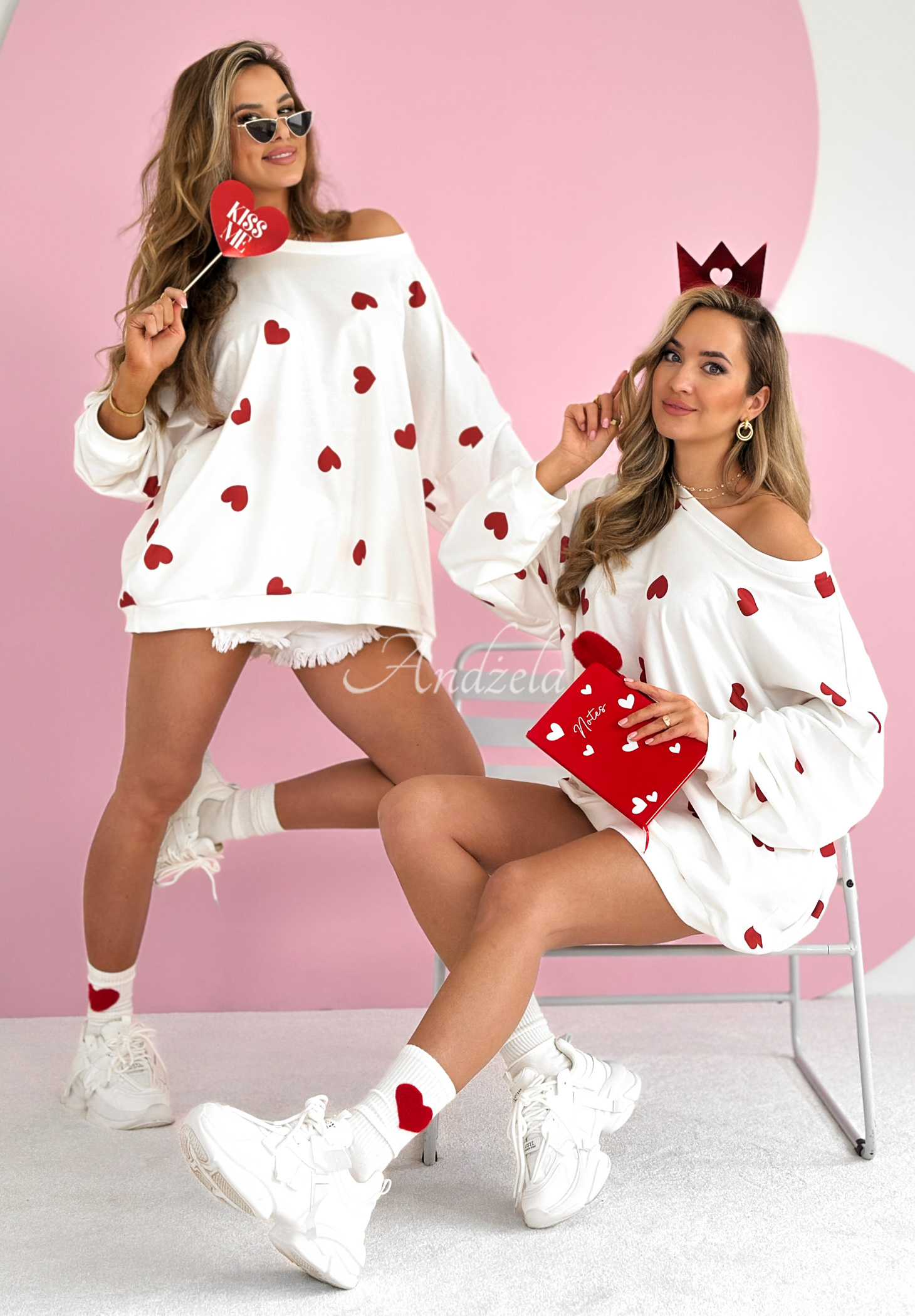 Cotton heart sweatshirt is a proposal created for styling in a comfortable, yet fashionable way. It is a voluminous, oversized cut model with a rounded neckline and lowered shoulder line. Both at the sleeves and at the bottom there are welts. The whole will perfectly fit into the closet of any woman looking for comfortable solutions. Designed by ANDŻELA!