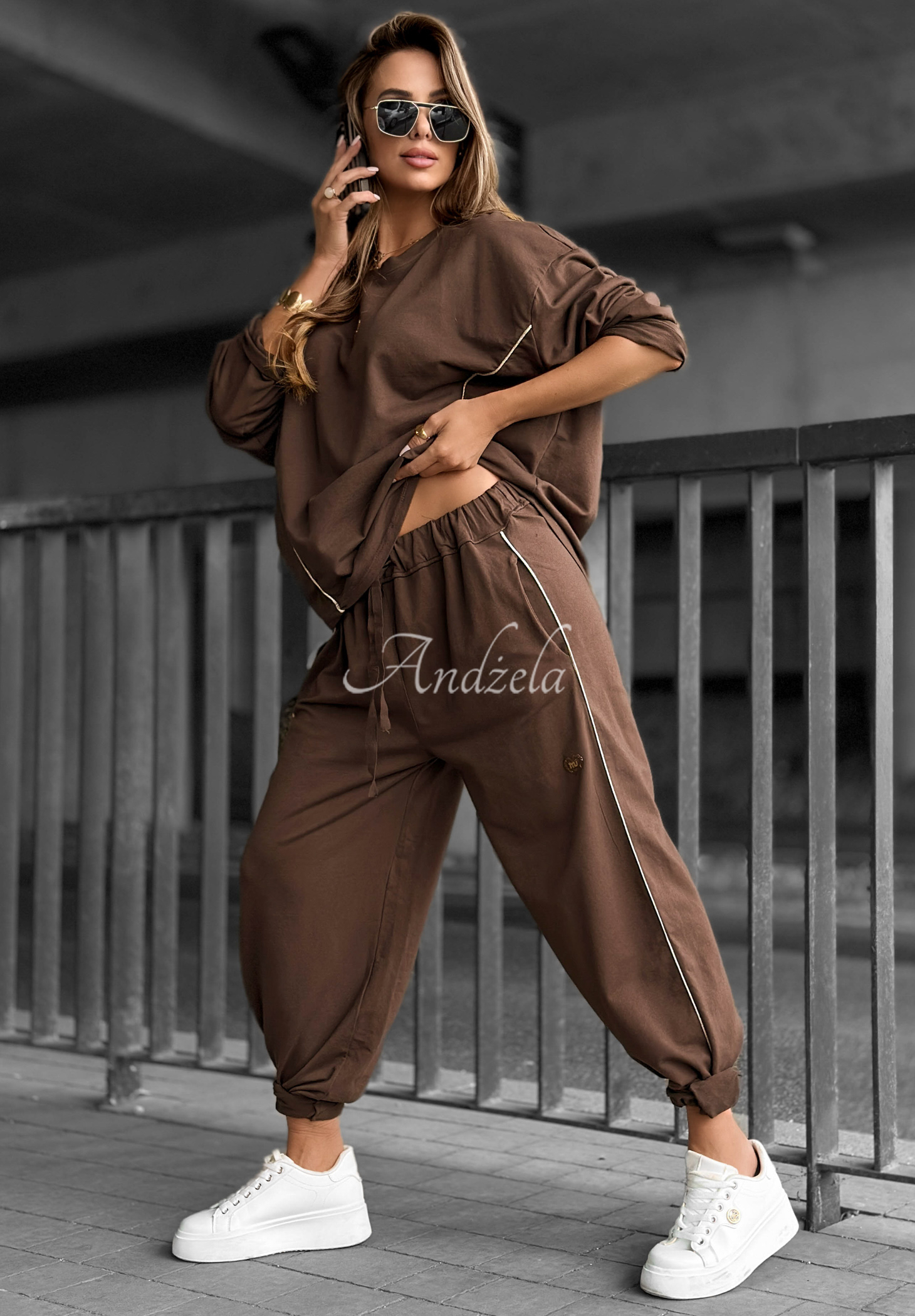 Bluza oversize You Left Early czekoladowa