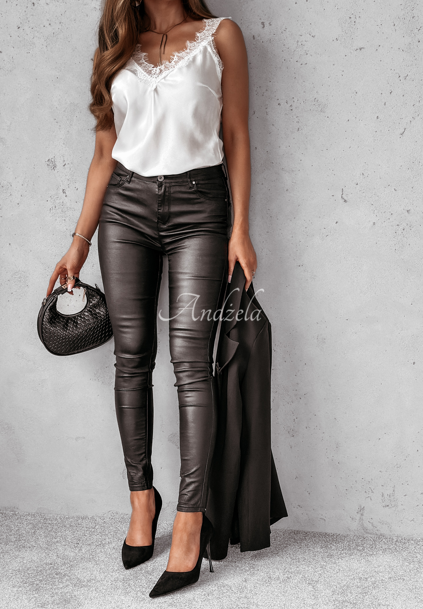 Satin strapless top with delicate lace trim. This model will present itself extremely feminine, it will work both in everyday and elegant styling. The product is available in several color variants.