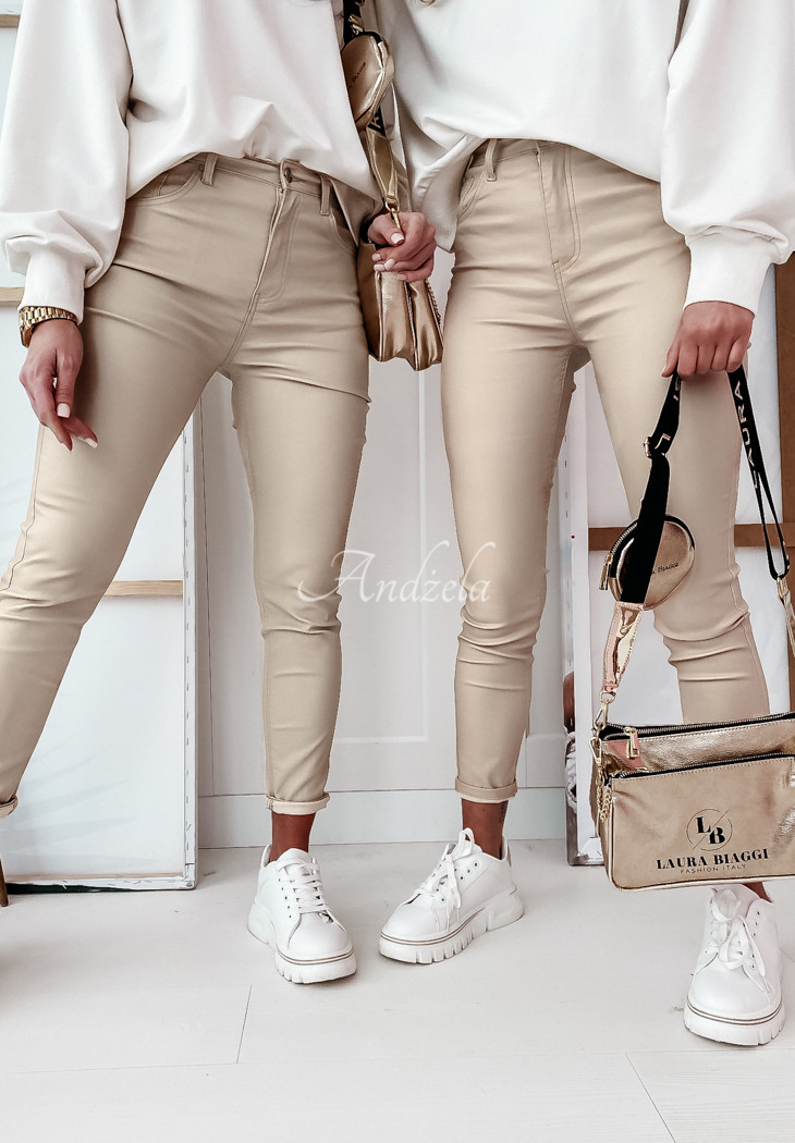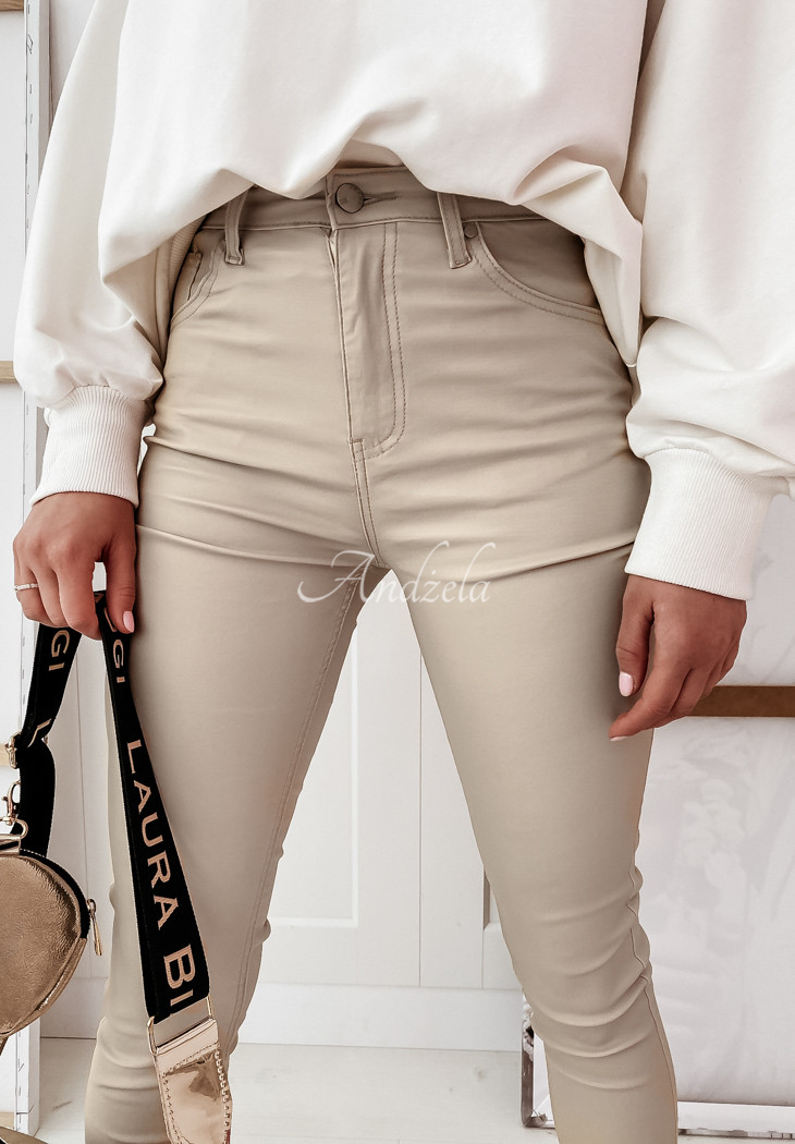 Fitted pants made of imitation leather material. The model is fastened with a zipper and a button, and has pockets on the back. It will add character to any of your styling, will undoubtedly present an original look and emphasize the silhouette. A very comfortable proposition, available in several color variants.