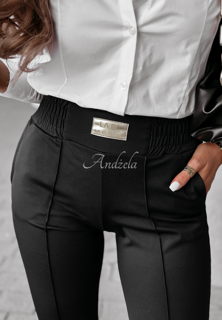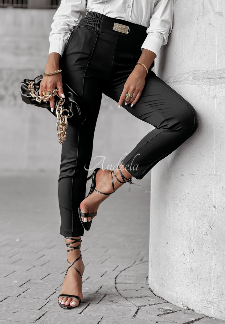 Material pants with tapered legs, which are distinguished by vertical stitching. The model has an elastic waistband for a perfect fit. There are functional pockets on the front.