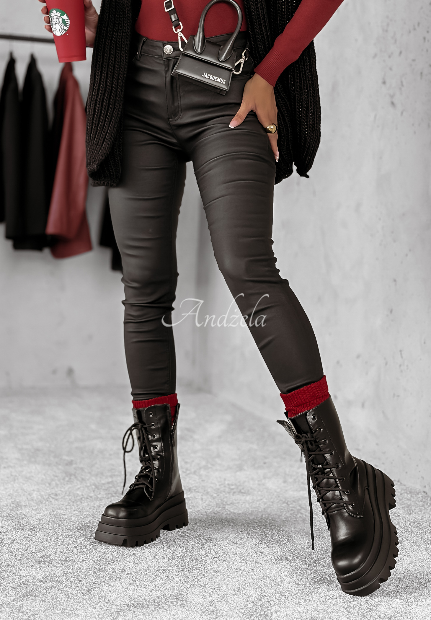The model is 165 cm tall, size 38/M presented.