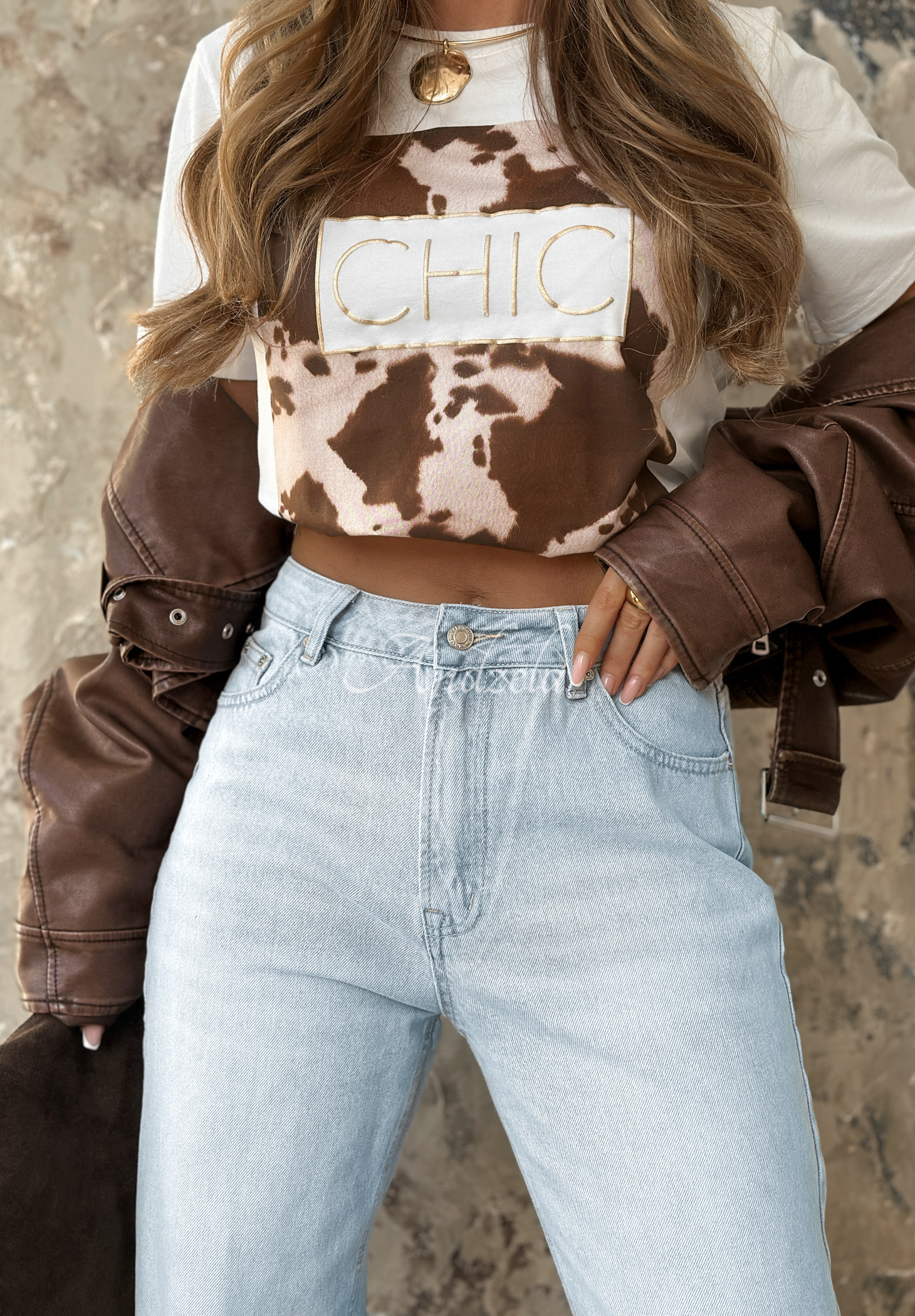 The model is 165 cm tall, size 38/M presented.