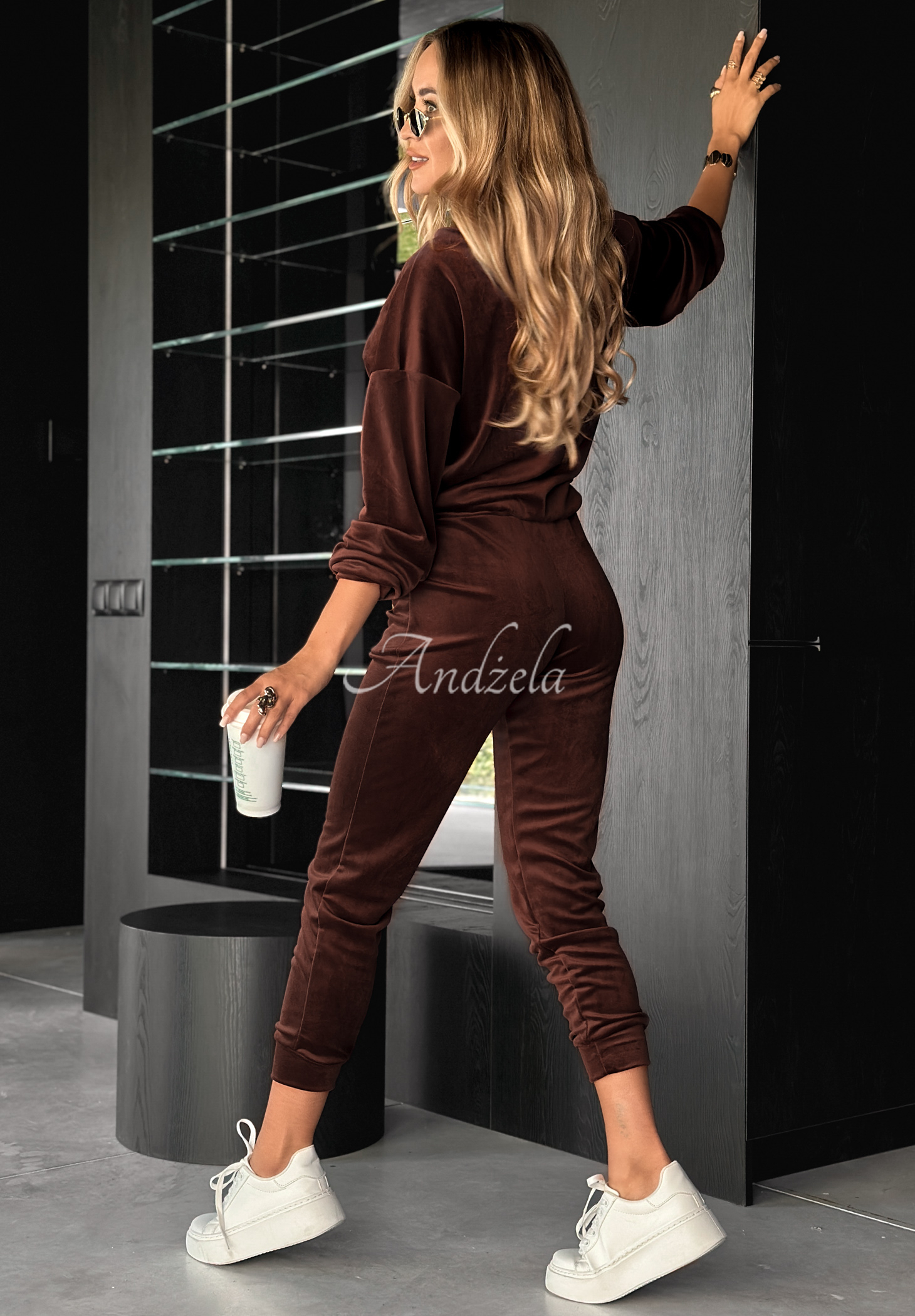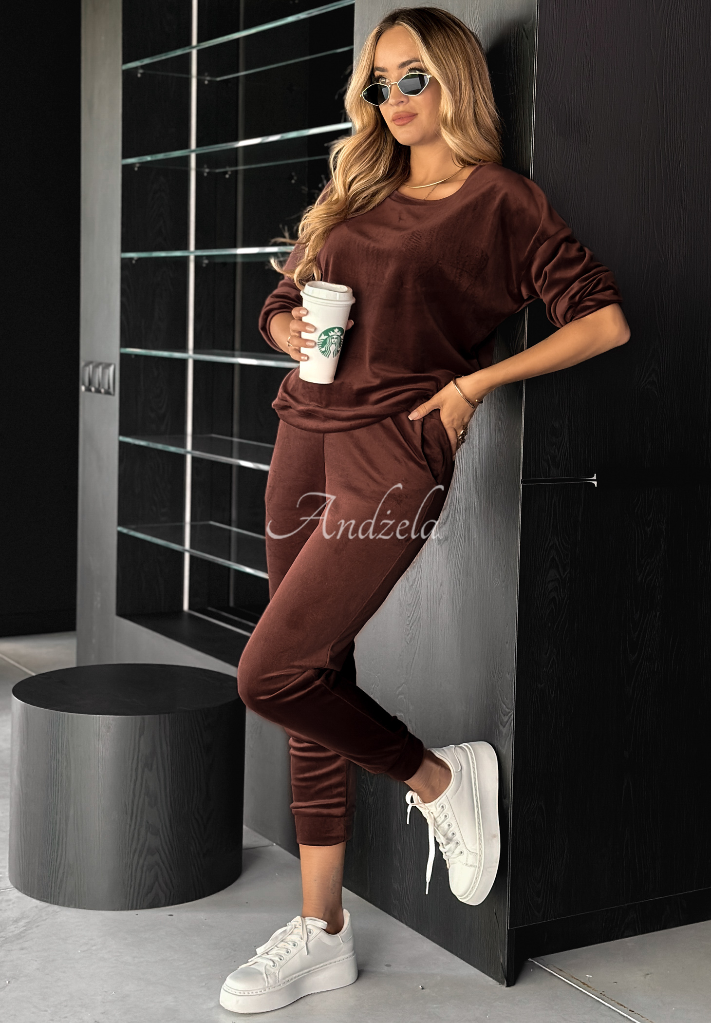 Welurowy komplet dresowy to propozycja stworzona z myślą o codziennych lookach. Bluza o zaokrąglonym dekolcie posiada długie rękawy zakończone ściągaczami. Spodnie to model z elastyczną gumką w pasie oraz funkcjonalnymi kieszeniami z przodu.