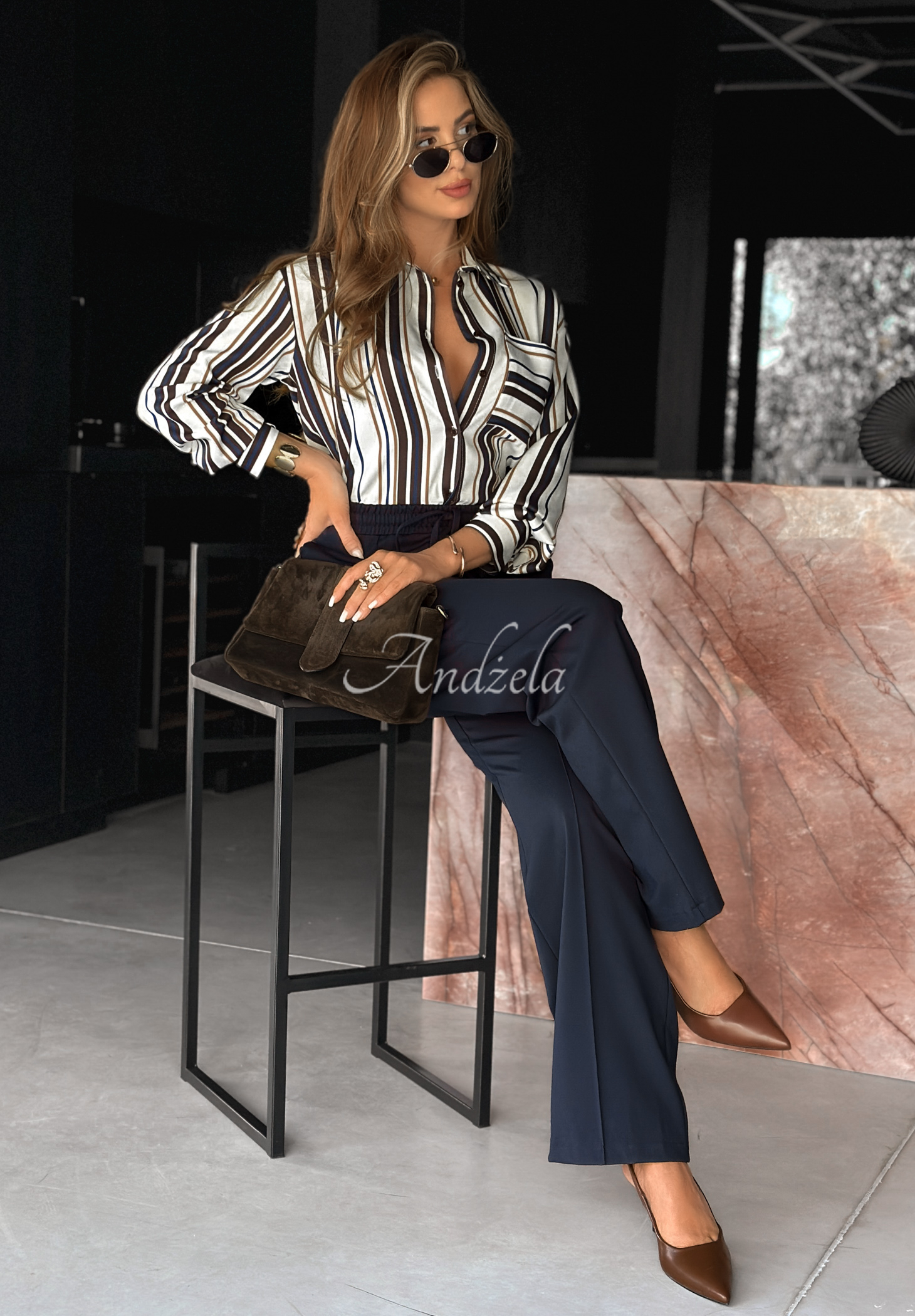 Modelka ma 165 cm wzrostu, prezentowany rozmiar 38/M.