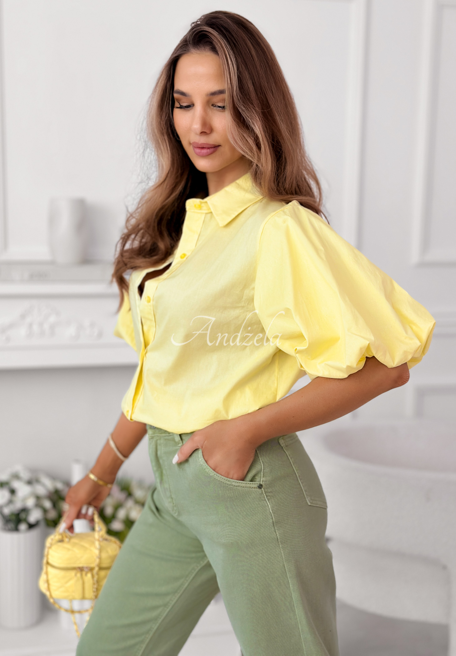 Bawełniana koszula z bufiastymi rękawami Jane żółta