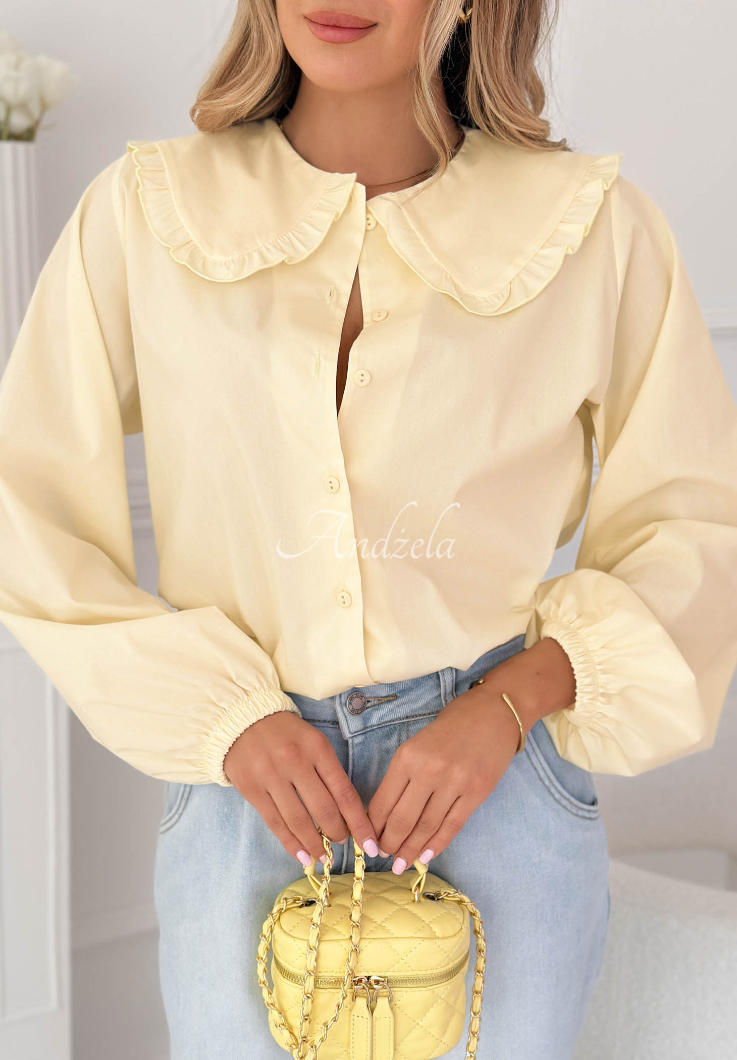 Wiskozowa koszula z ozdobnym kołnierzem Martha żółta
