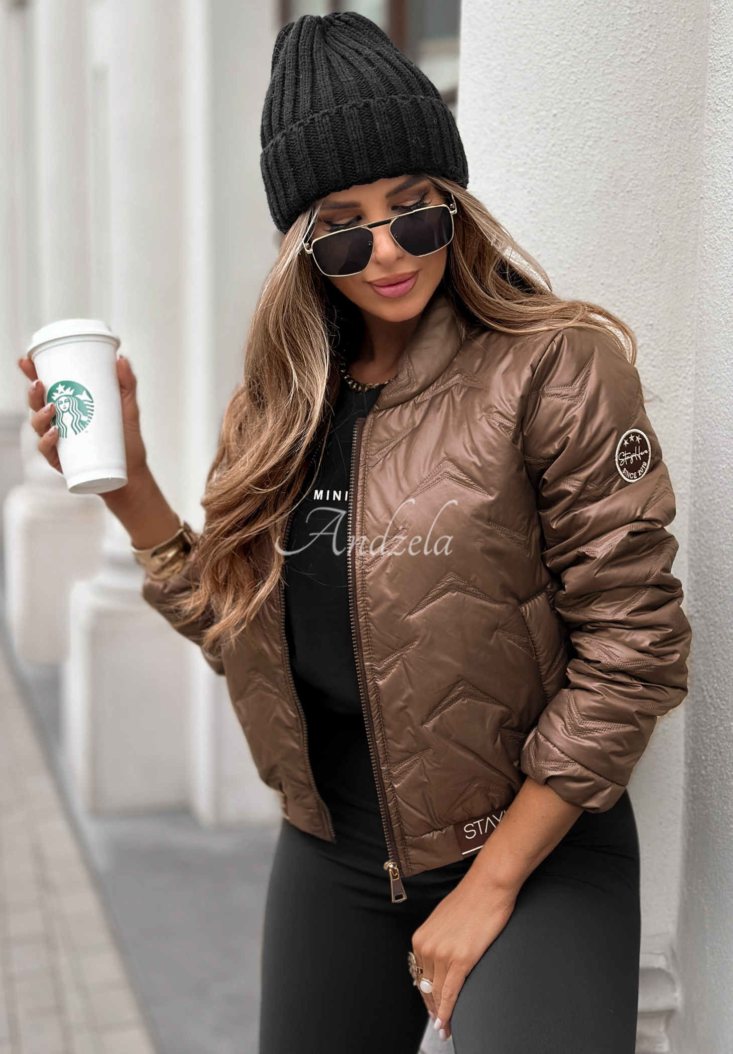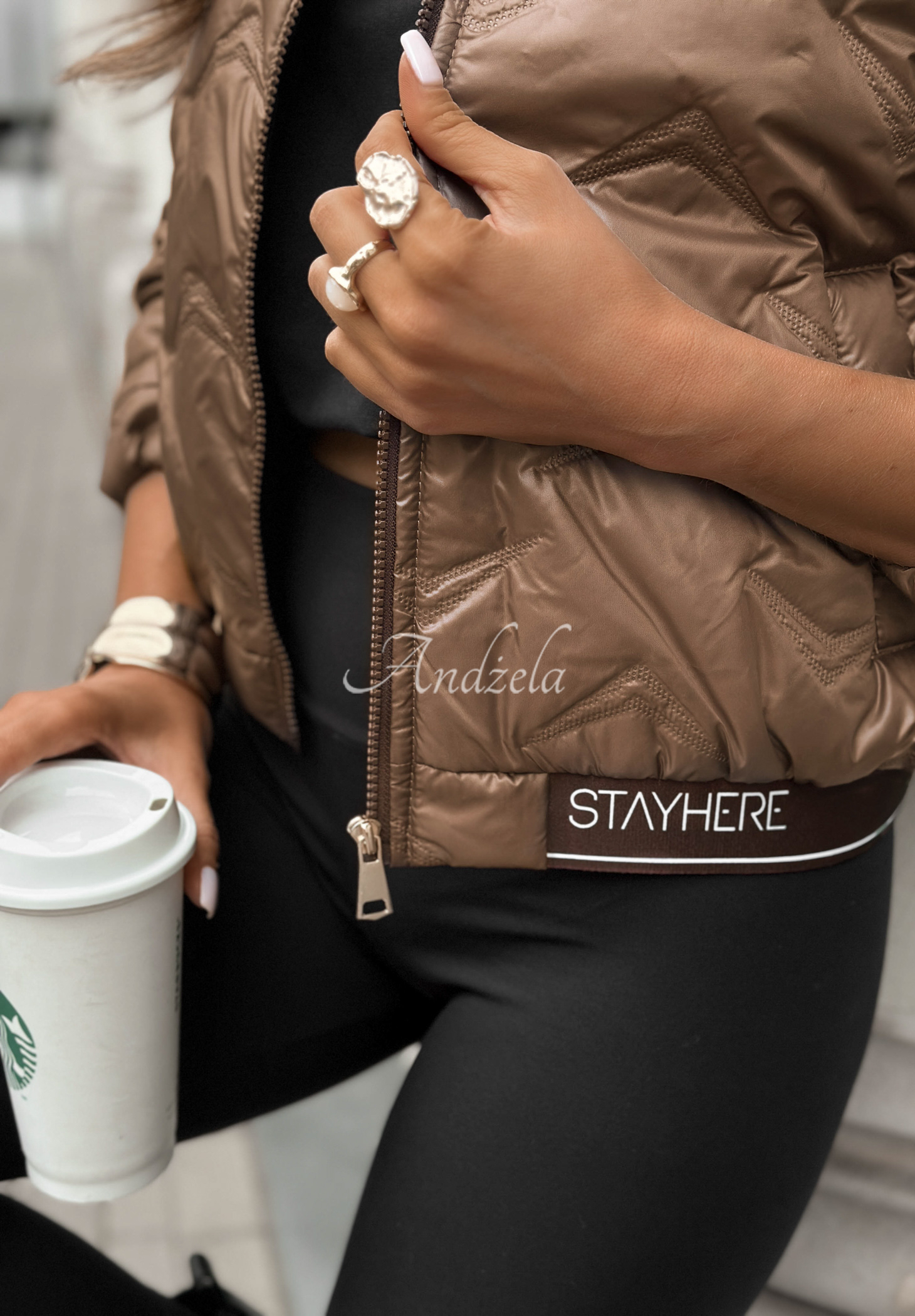 Modelka ma 165 cm wzrostu, prezentowany rozmiar 38/M.
