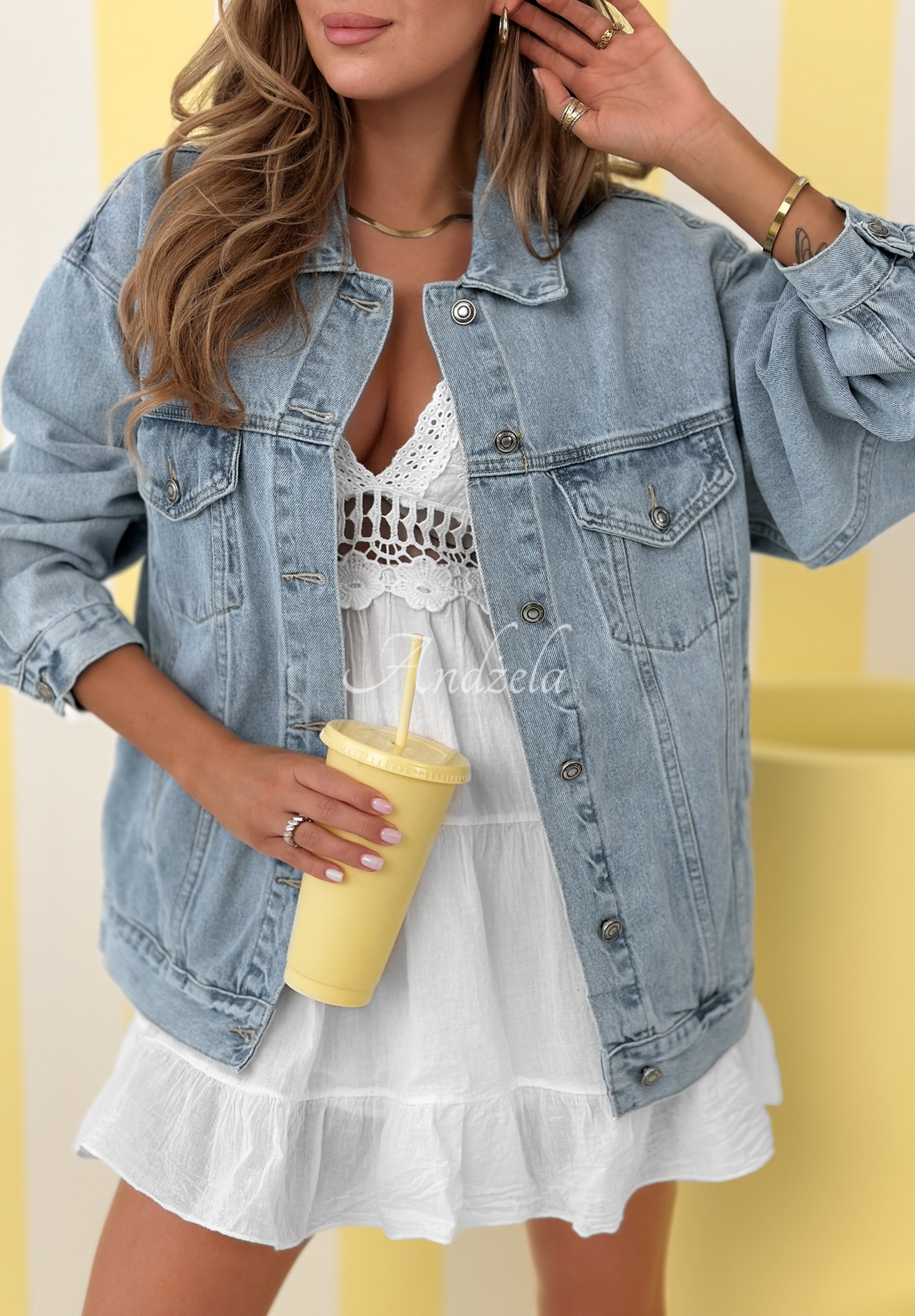 Modelka ma 170 cm wzrostu, prezentowany rozmiar 36/S.