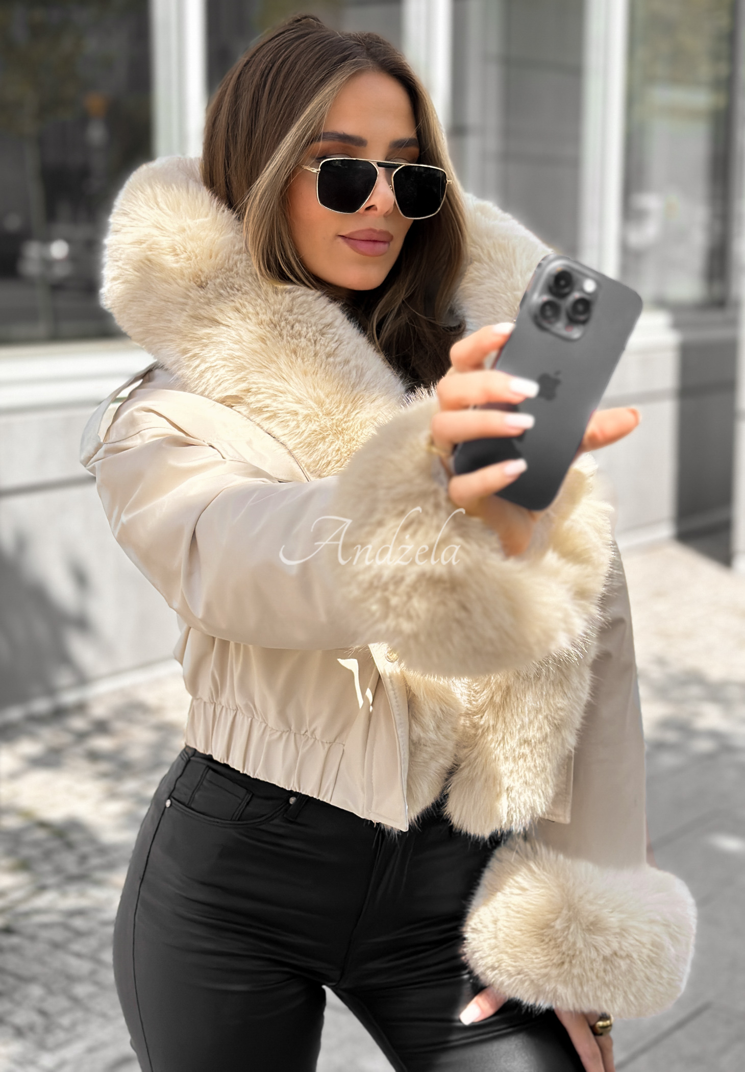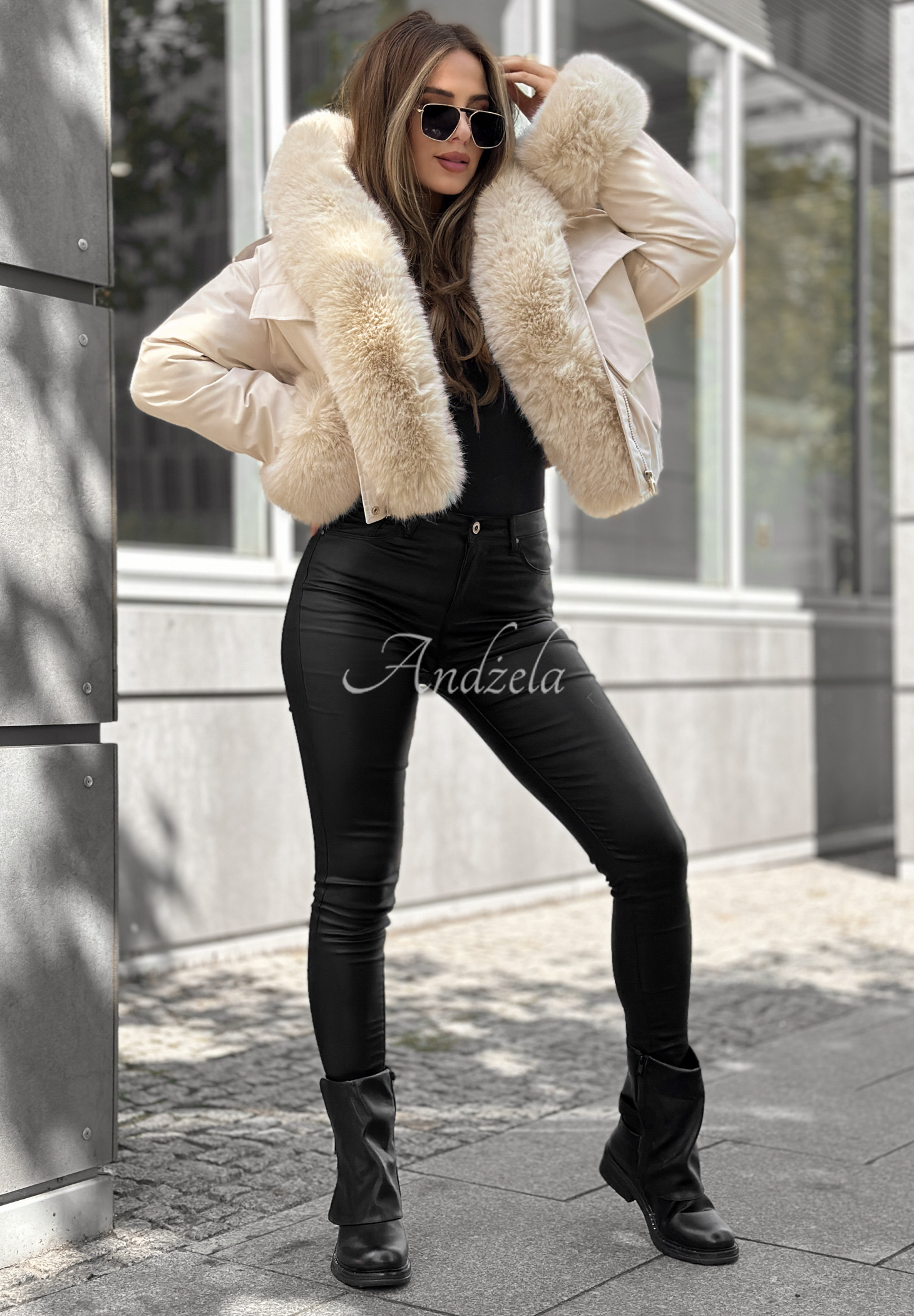 * odpinane syntetyczne futerko przy kapturze i rękawach