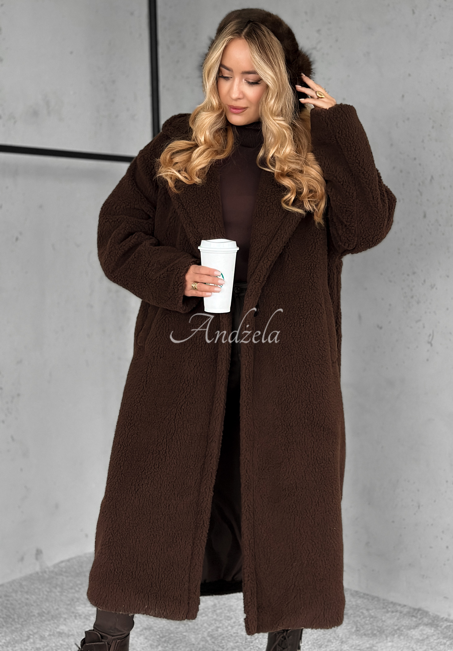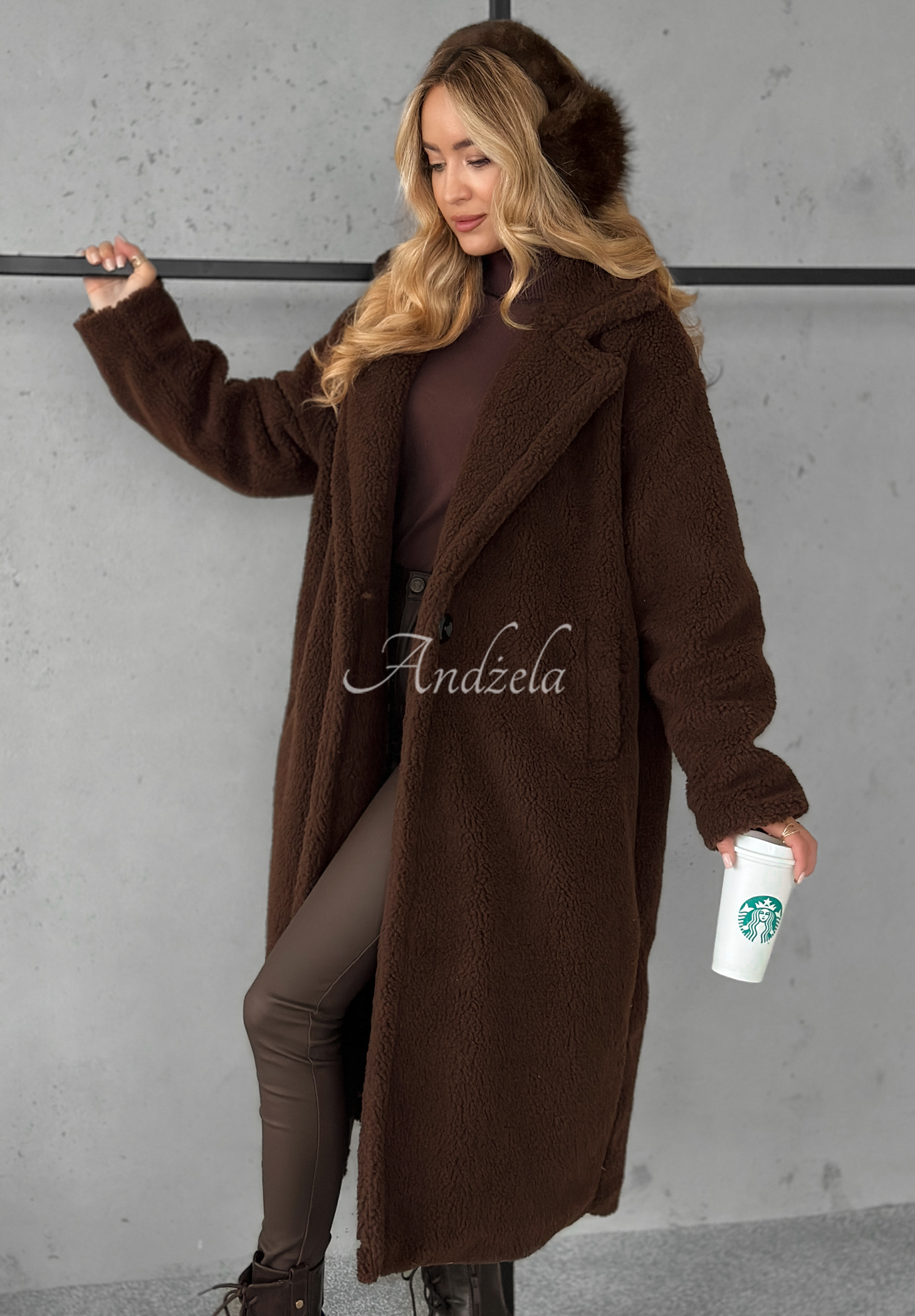 Płaszcz z imitacji kożucha to doskonałe uzupełnienie jesiennych looków. Model o oversizowym kroju, zapinany jest na guzik. Posiada kołnierz, a także kieszenie znajdujące się z przodu. Fenomenalnie zaprezentuje się w codziennym, a nawet eleganckim wydaniu.