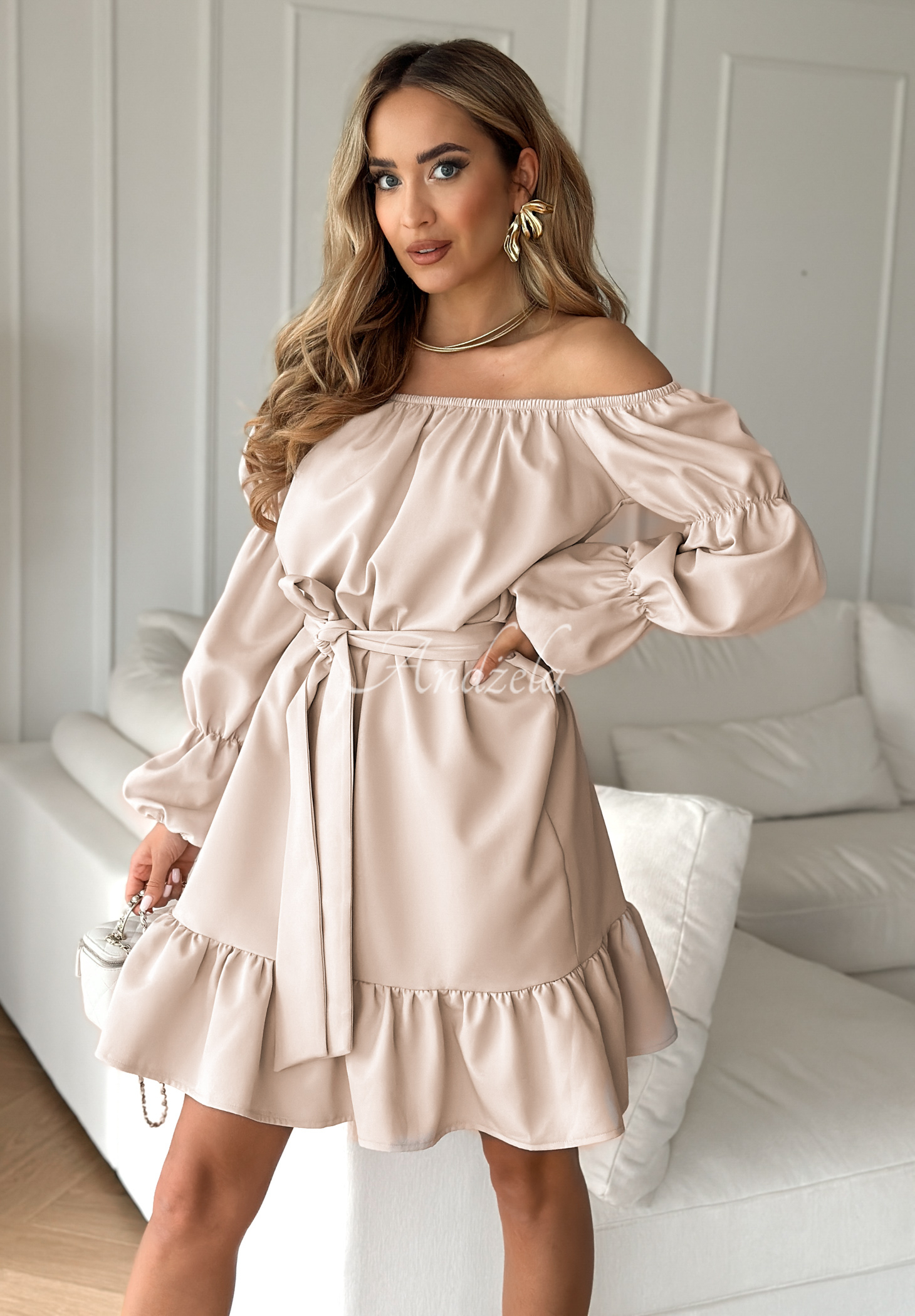 Sukienka hiszpanka z paskiem To Love Me beżowa