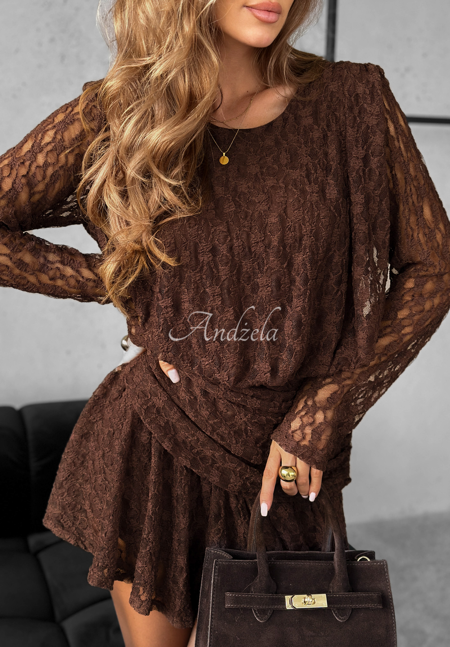 Modelka ma 165 cm wzrostu, prezentowany rozmiar 38/M.