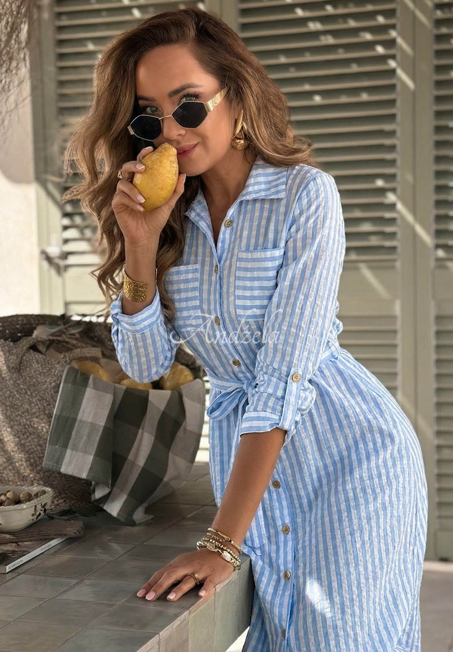 Koszulowa sukienka maxi w kratę Spring Velvet Air błękitna