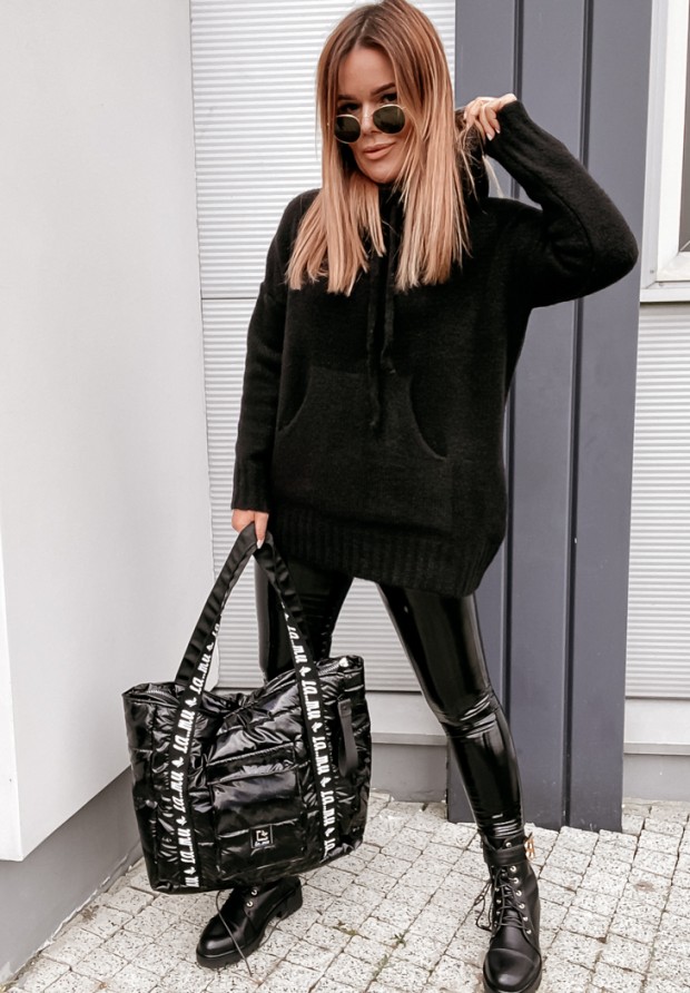 Luźny sweter uszyty z miękkiej, przyjemnej w dotyku dzianiny. Model posiada kaptur ze ściągaczem, rękawy zakończone ściągaczem oraz z przodu dużą kieszeń. Dostępny w kilku wariantach kolorystycznych. Projekt by ANDŻELA!
