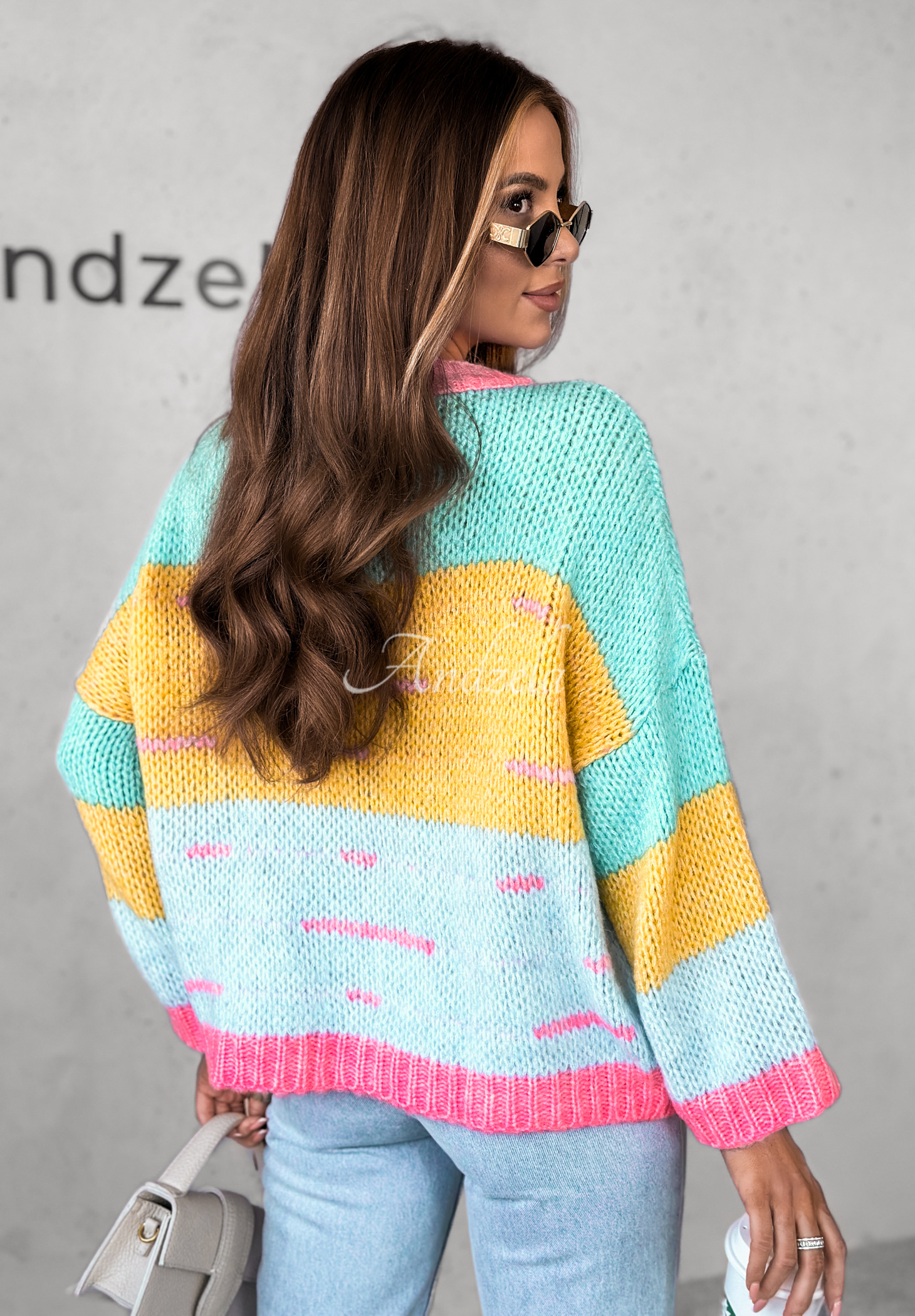 Oversizowy sweter wykonany z wysokiej jakości materiału z domieszką wełny to świetny wybór do wielu stylizacji. Model z dekoltem w łódkę wyróżnia się różnymi kolorami dzianiny, która nadaje całości wyjątkowego looku. Dostępny w kilku wersjach kolorystycznych.
