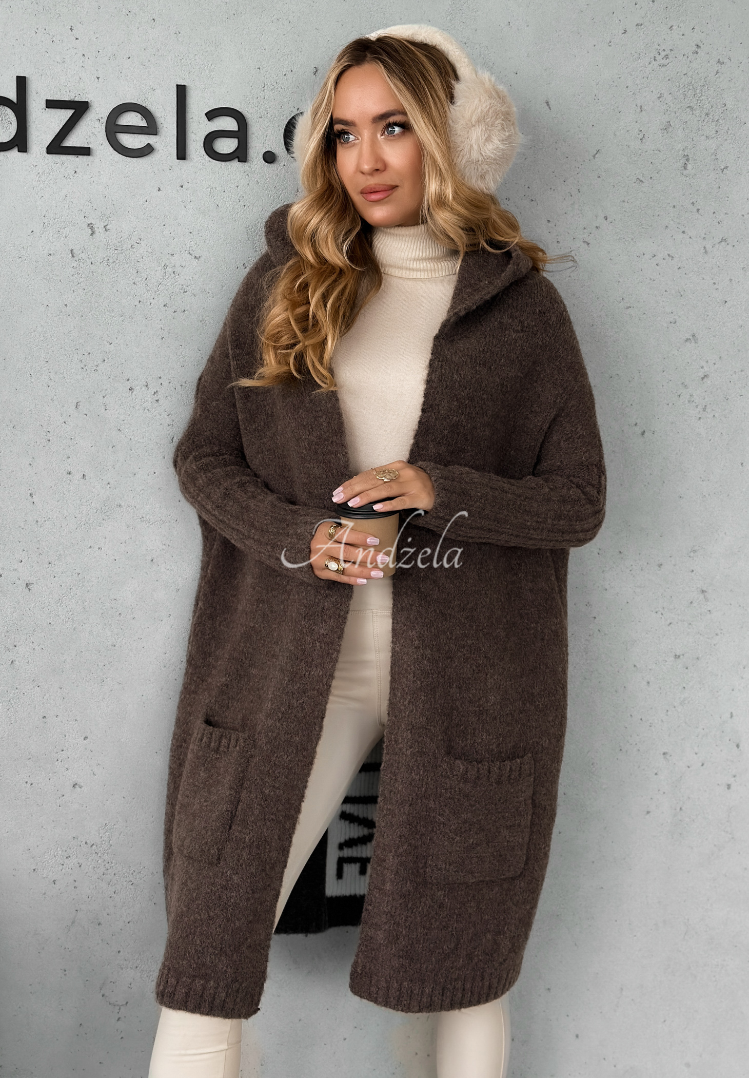 Długi kardigan z domieszką wełny to najlepszy wybór na chłodniejsze dni! Posiada kaptur oraz kieszenie, a jego rękawy wykończone zostały ściągaczami. Wyróżnia się napisami, znajdującymi się z tyłu, które nadają całości niepowtarzalnego charakteru. Ten oversizowy model z pewnością stanie się numerem jeden w wielu garderobach! Doskonale uzupełni codzienne looki i zaprezentuje się naprawdę modnie. Produkt dostępny jest w wielu wariantach kolorystycznych.